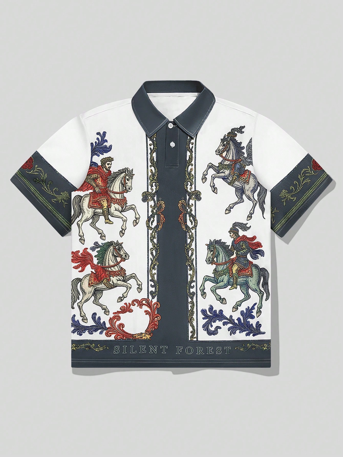 Street Life Polo a maniche corte casual e ampia con stampa Mustang per uomo