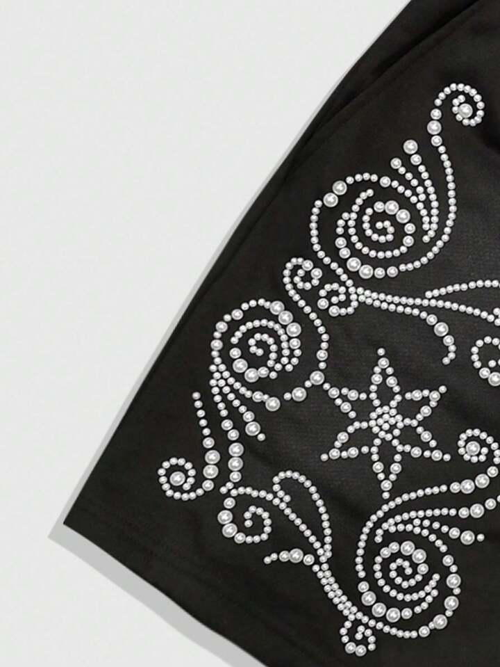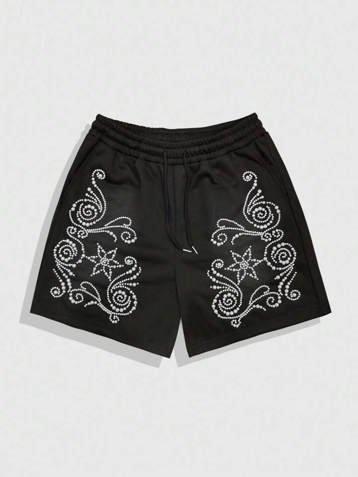 Street Life Pantaloncini con coulisse in vita, tasche e decorazione floreale con perle per uomo