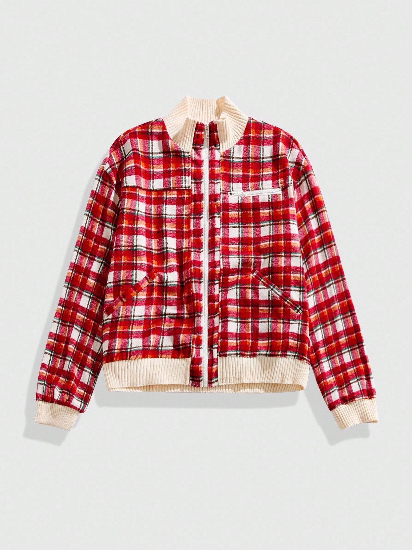 Street Life Giacca casual con chiusura lampo e maniche lunghe a quadri, autunno/inverno, da uomo