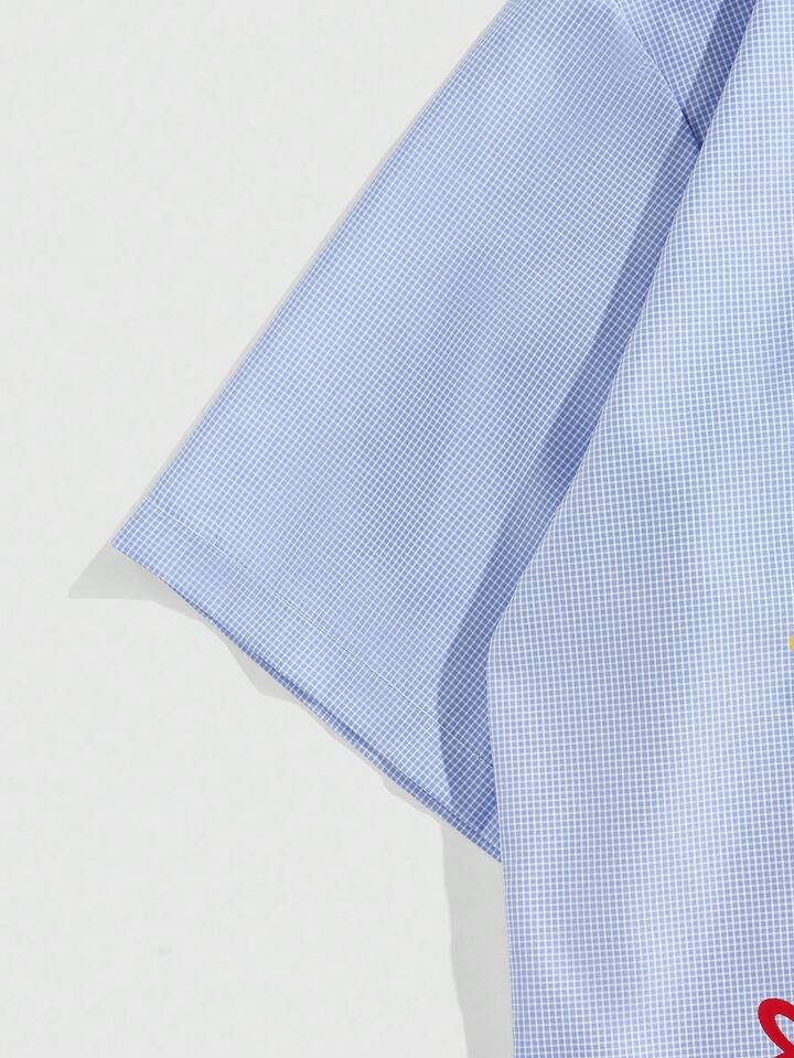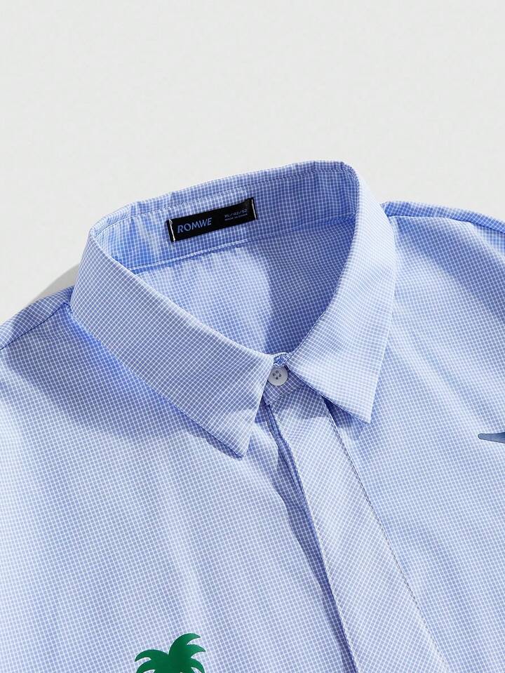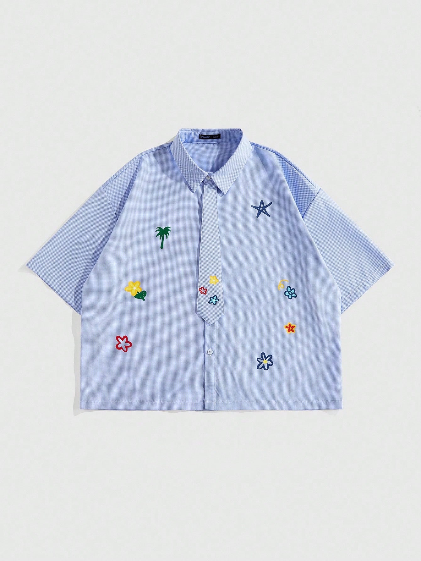 Street Life Camicia a maniche corte con bottoni e stampa di piante e fiori per uomo