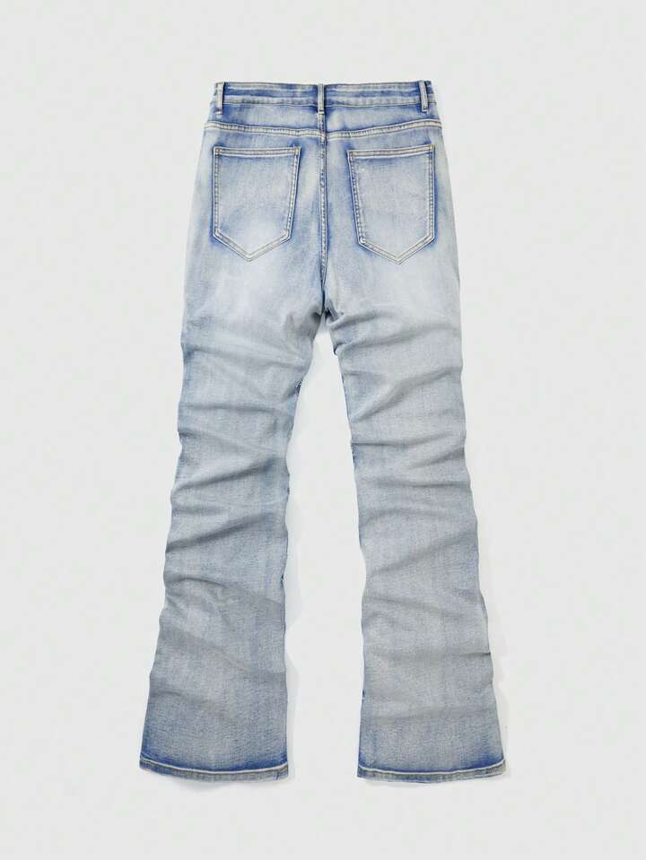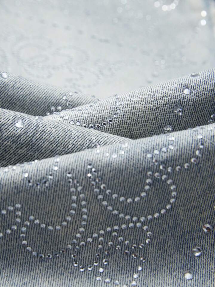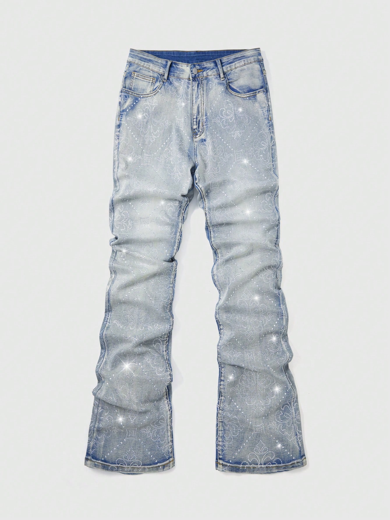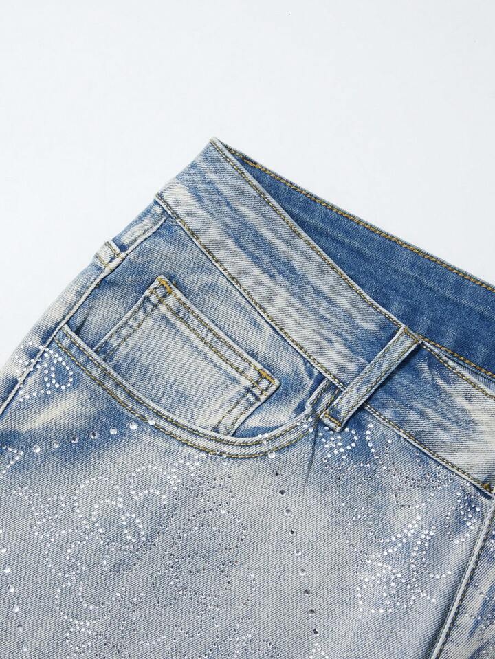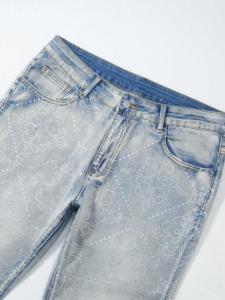 Street Life Jeans a zampa con pieghe, decorati con fiori e strass per uomo