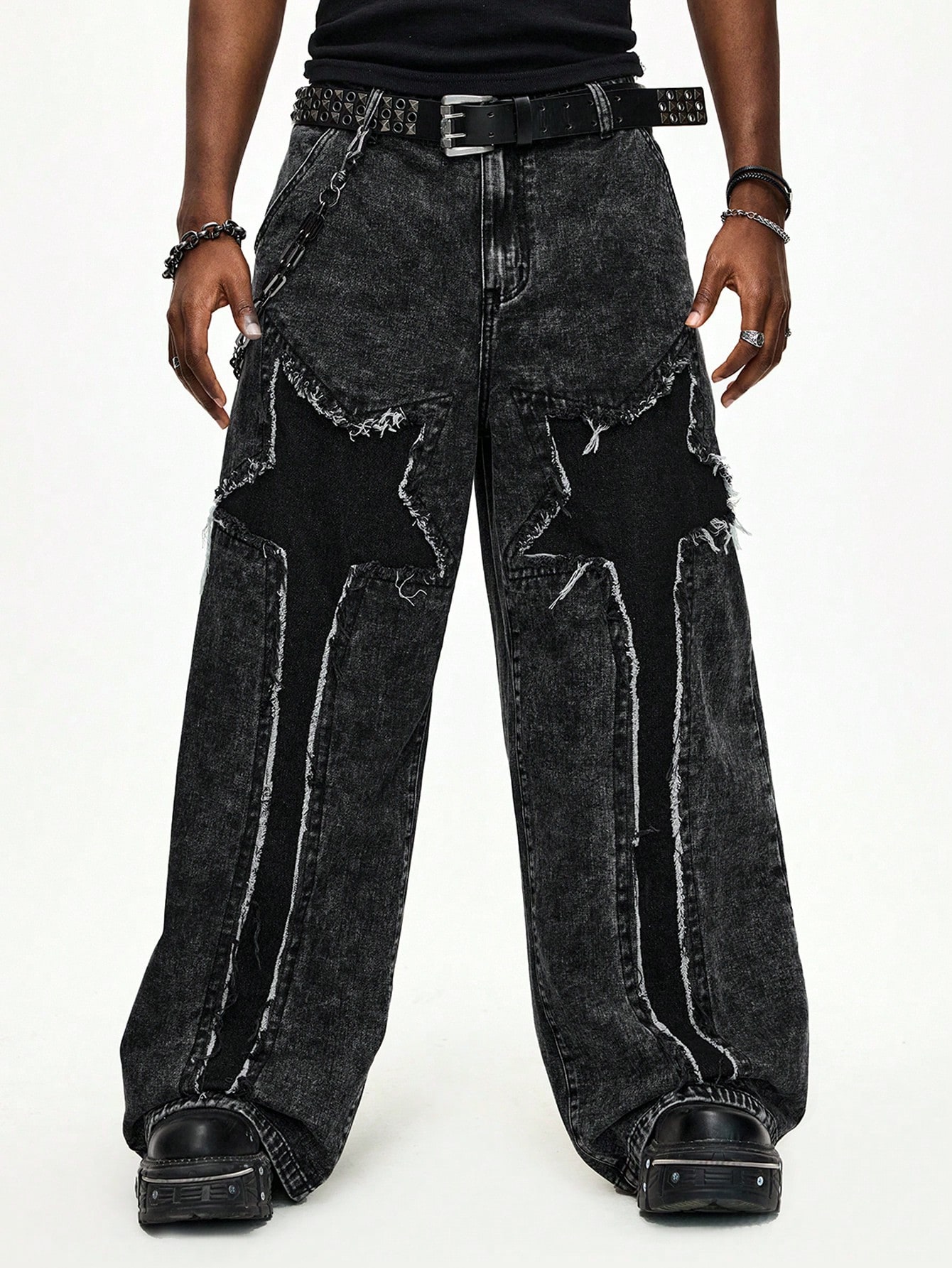 Street Life Jeans casual a gamba larga con orlo sfrangiato e tasche, versatili e alla moda, per uomo