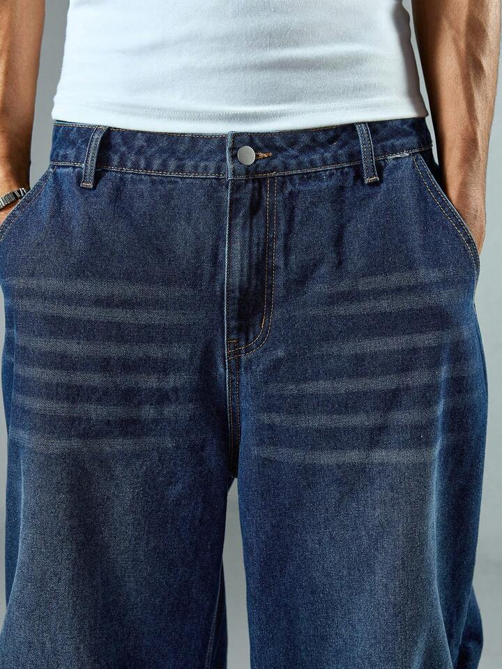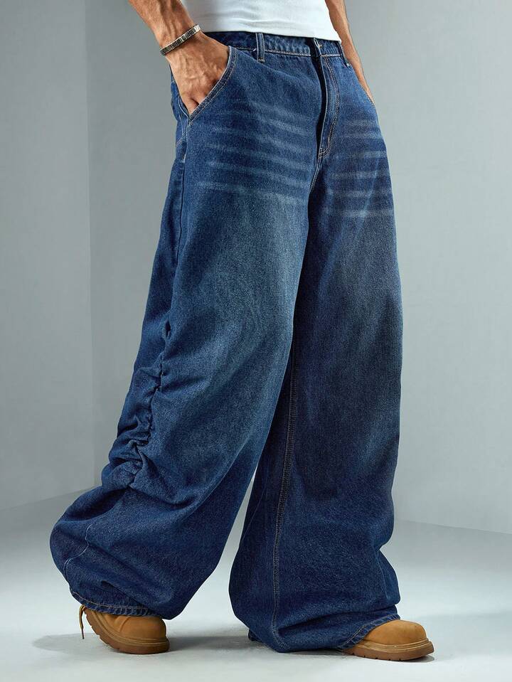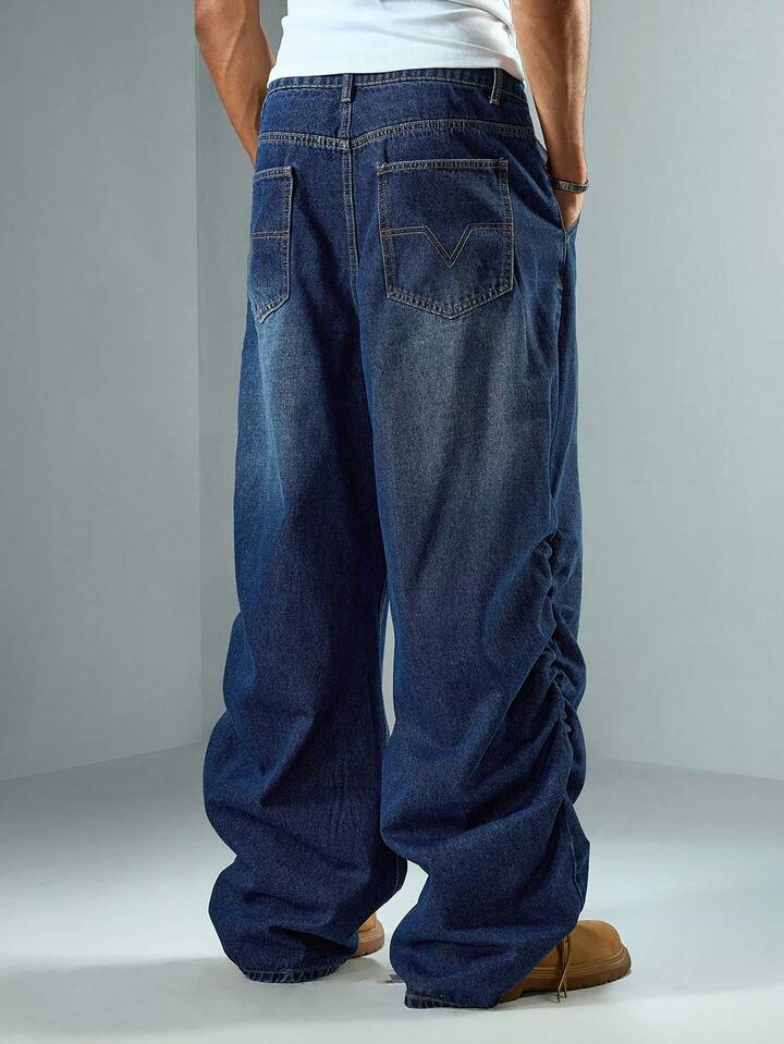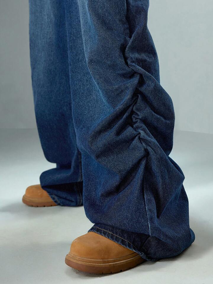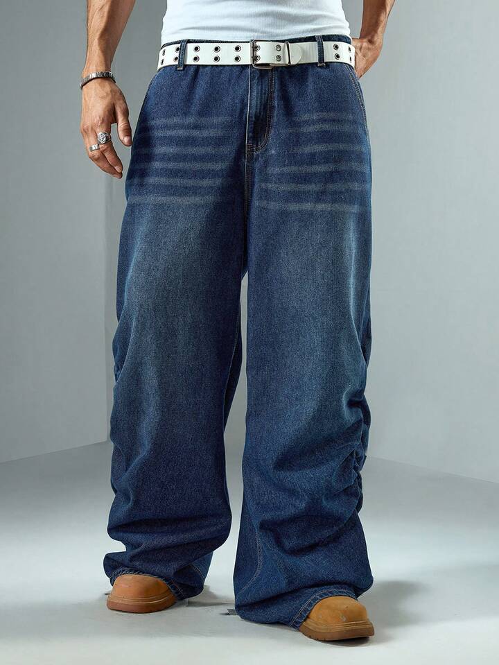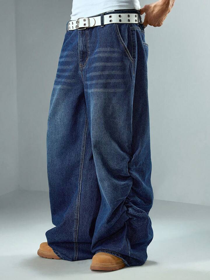 Street Life Pantaloni casual in denim lavato con gamba ampia, pieghe e tasche, adatti per uso quotidiano