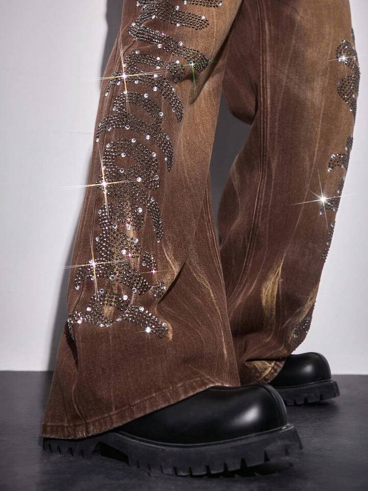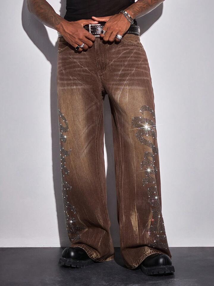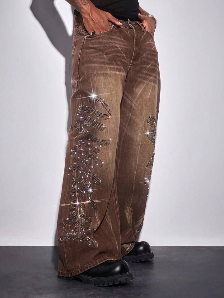 Street Life Jeans da uomo dritti con tasche e decorati con strass a forma di lettera