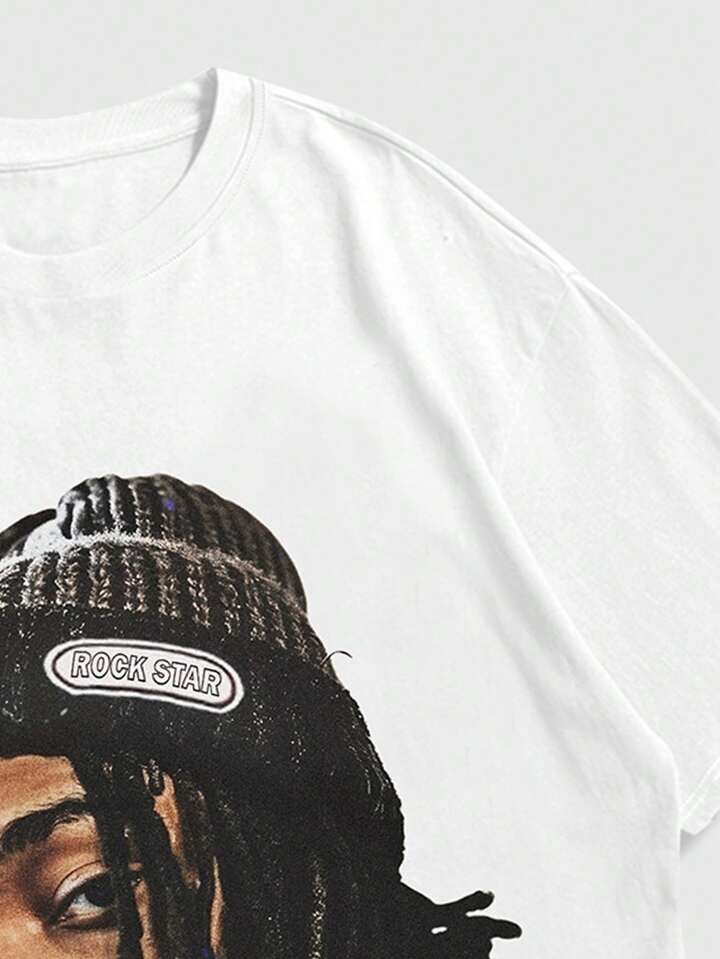 Street Life Maglietta manica corta con stampa di ritratto da uomo, adatta per uso quotidiano in primavera ed estate, per la scuola