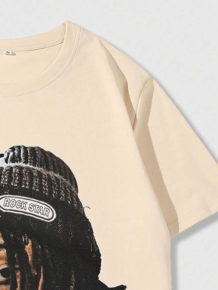 Street Life Maglietta a manica corta con stampa di ritratto da uomo, adatta per l'uso quotidiano in primavera ed estate, scuola