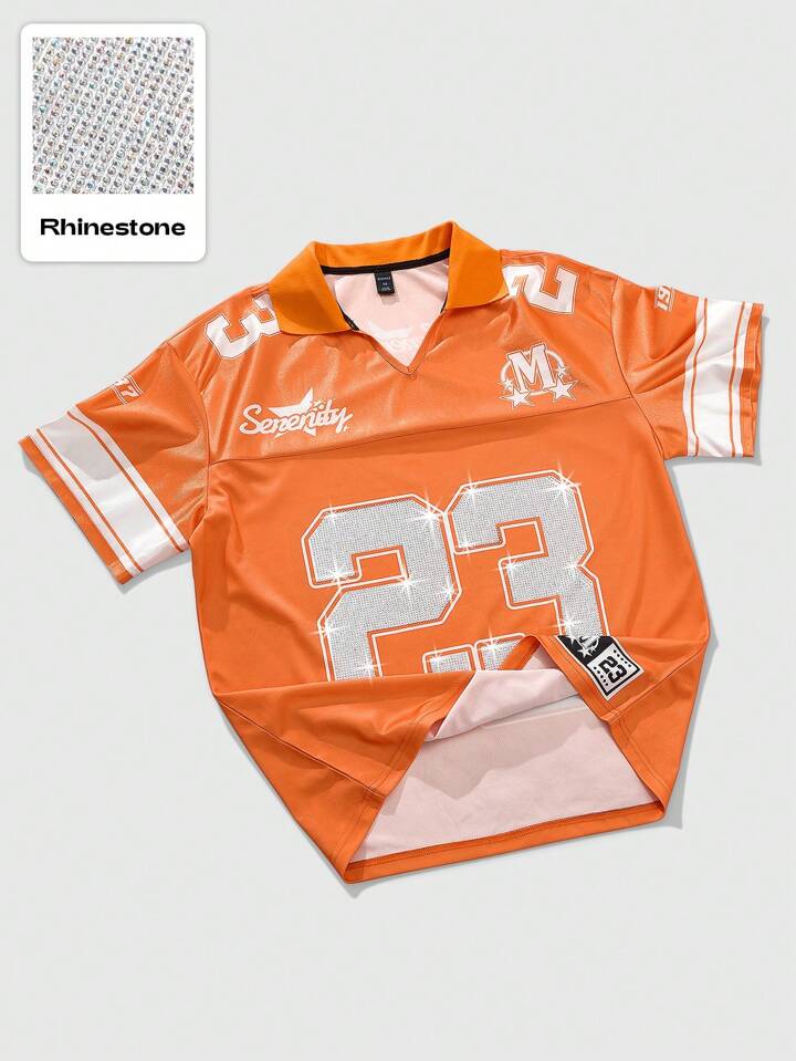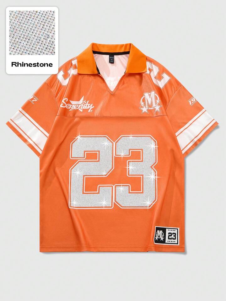 Street Life Polo da uomo con stampa grafica di numeri e lettere in stile sportivo americano di strada