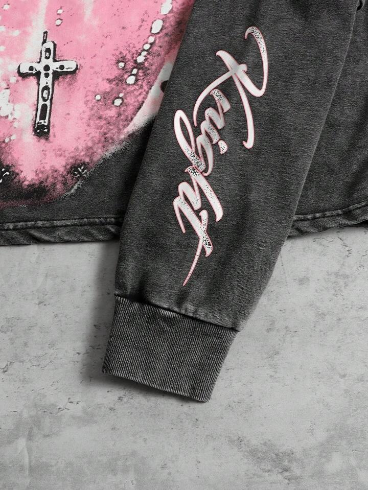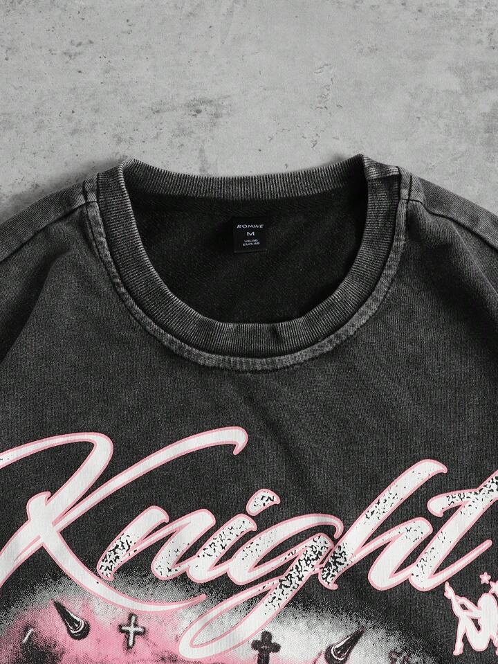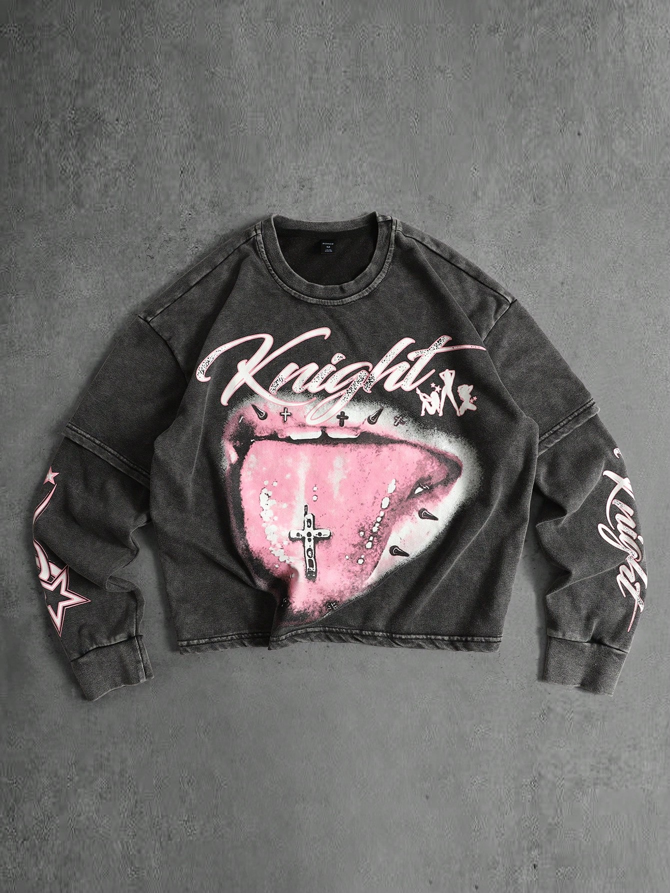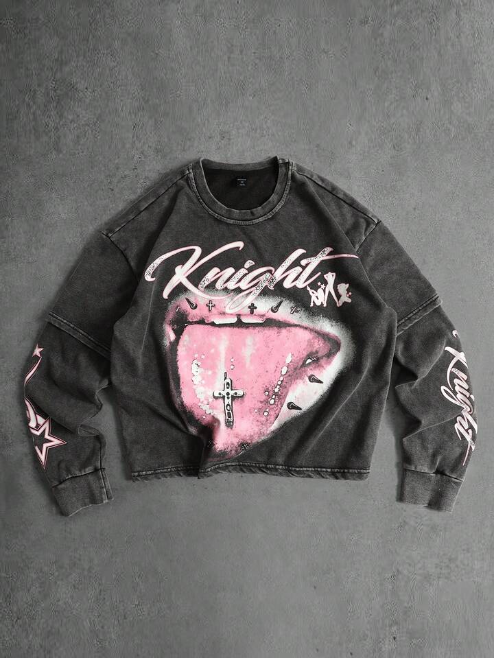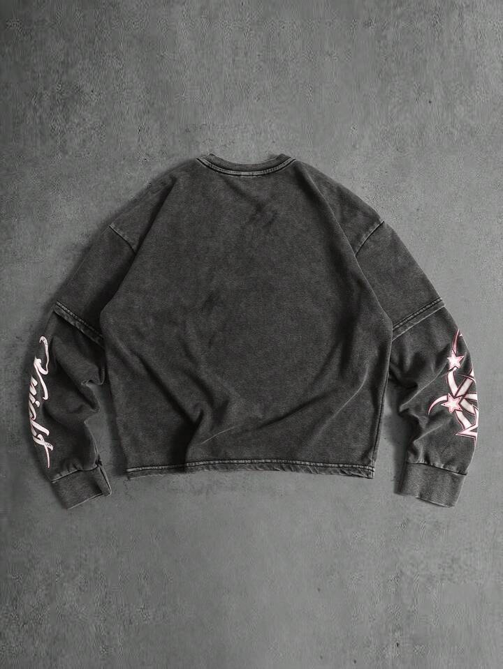 Street Life Maglietta a maniche lunghe da uomo con stampa e strato doppio, effetto vissuto, vestibilità morbida