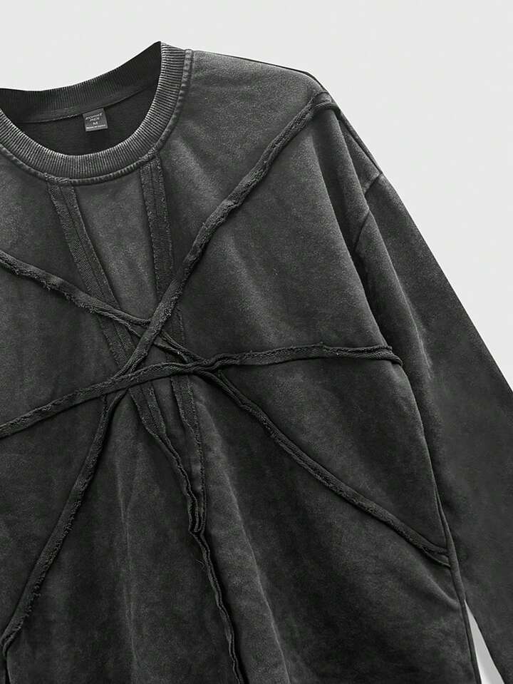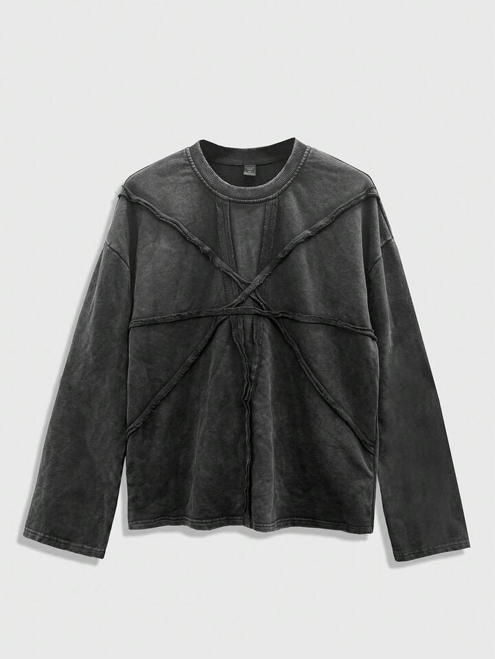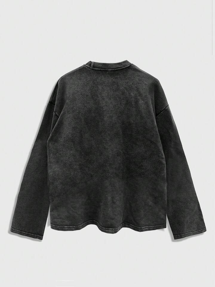 Street Life Maglietta casual da uomo a maniche lunghe, vestibilità ampia, spalle cadenti, lavata, stile di moda da strada, primavera/autunno