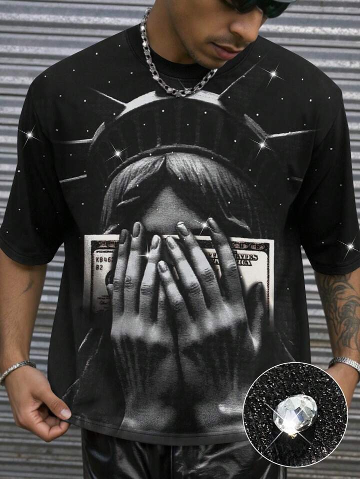 Street Life T-shirt casual da uomo con collo tondo e maniche corte, stile punk