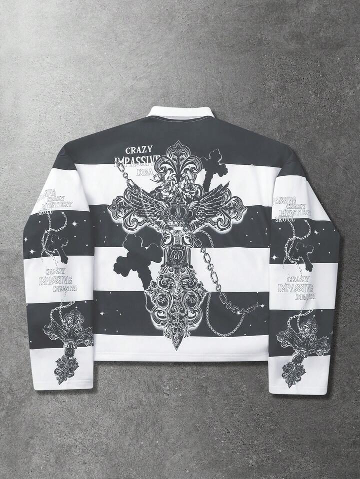 Street Life Felpa da uomo stile retrò con stampa grafica della Vergine Maria e righe, in stile street