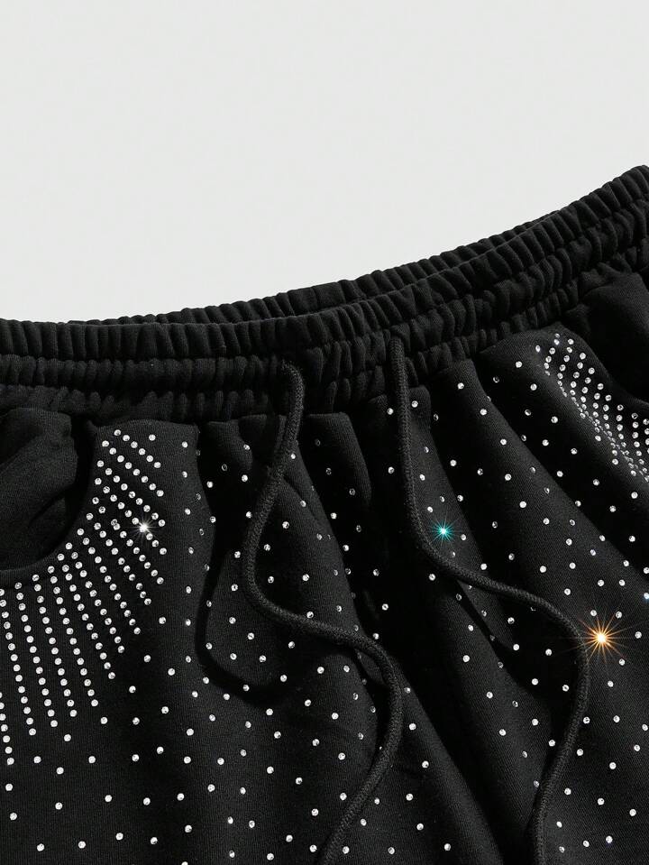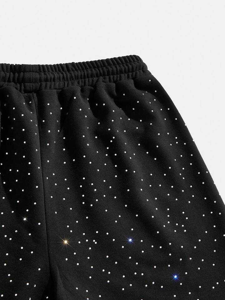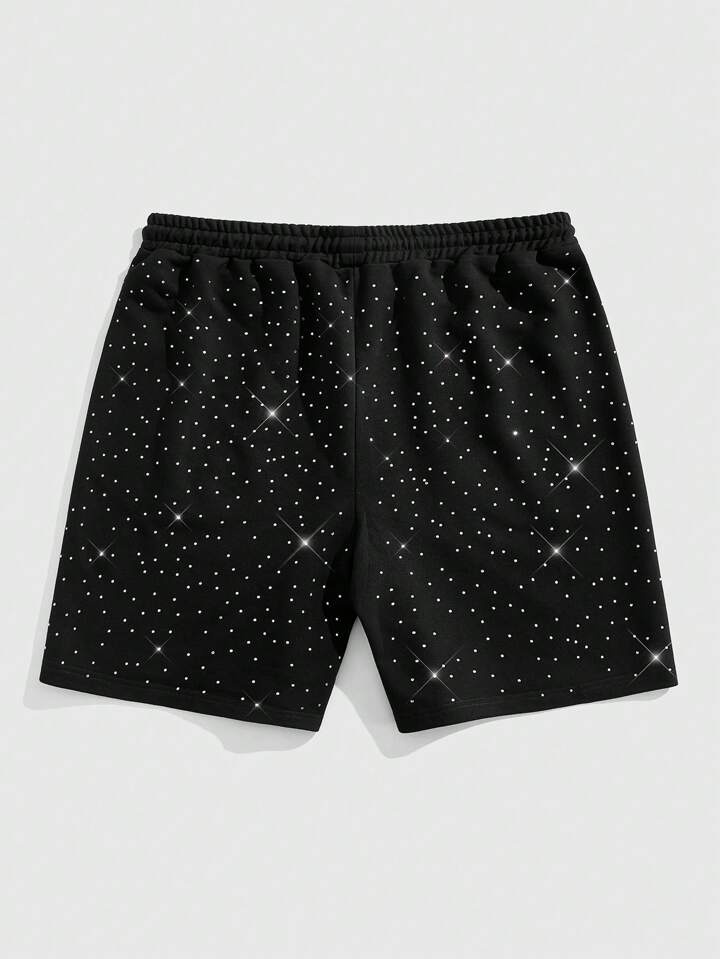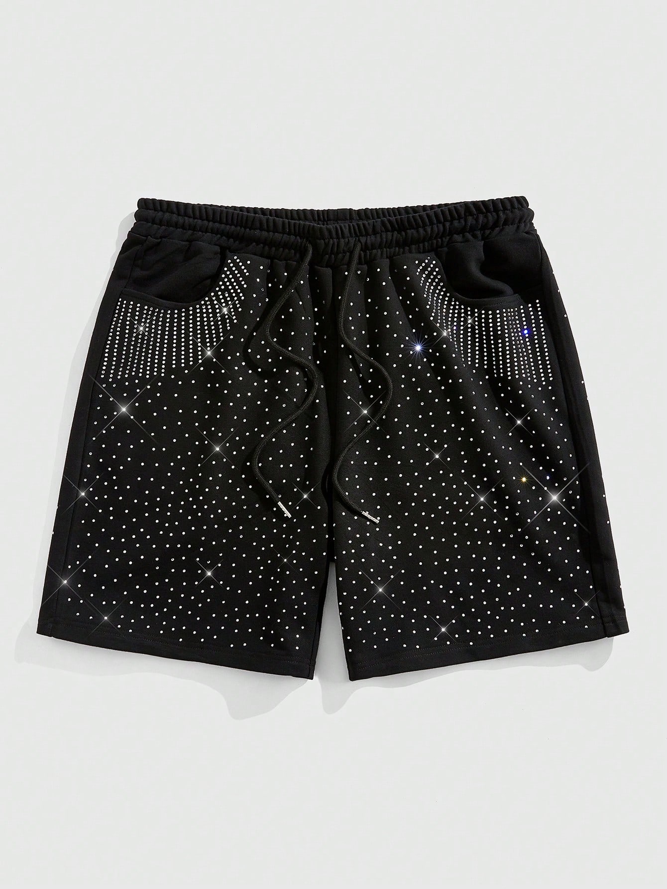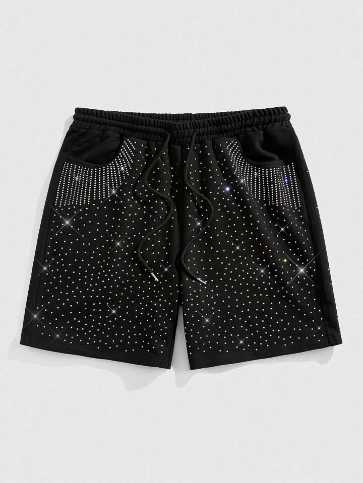 Street Life Pantaloncini larghi da uomo con vita con cordoncino e tasche, con strass