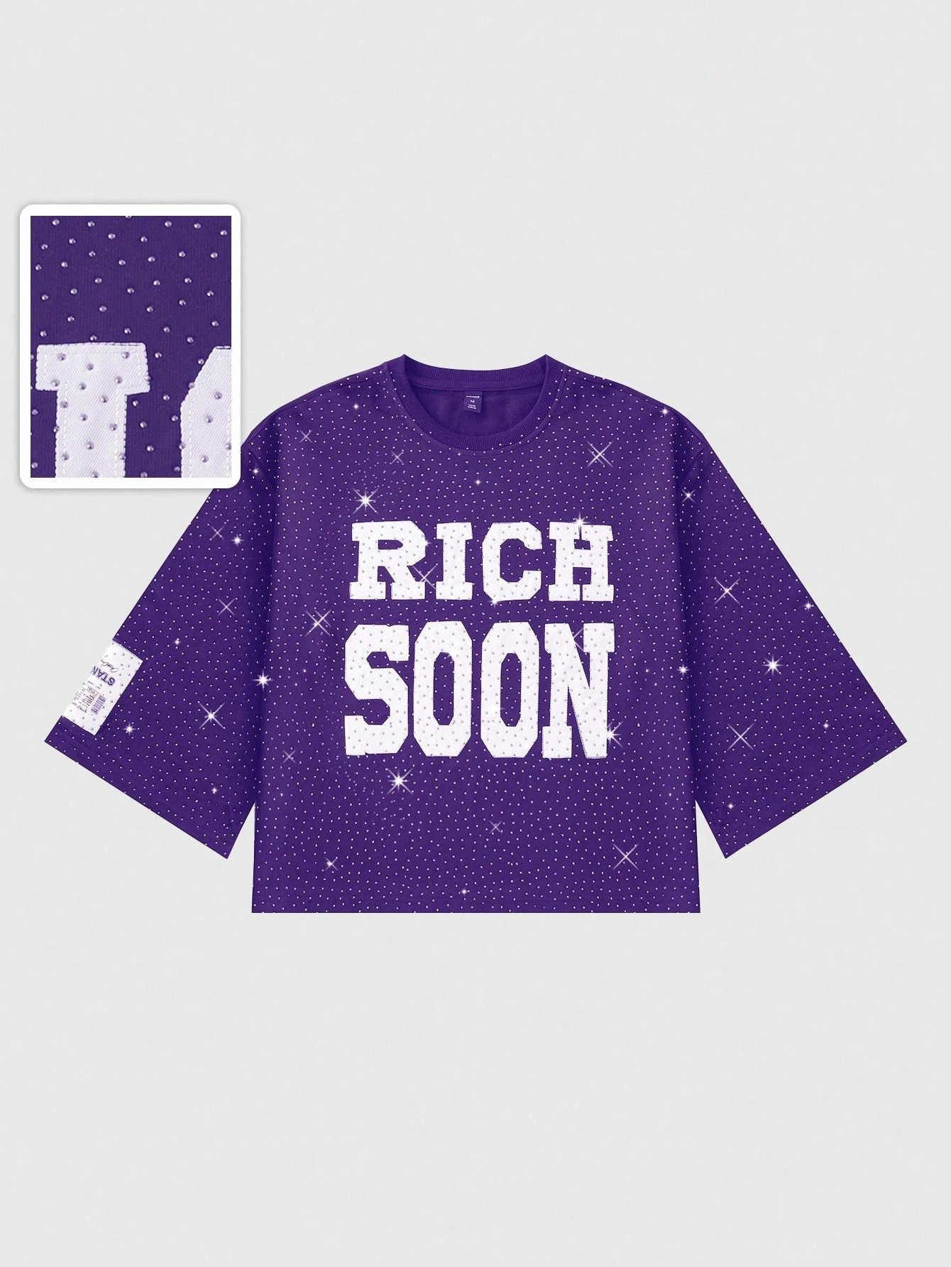 Street Life Maglietta da uomo con ricamo di strass, manica a 3/4