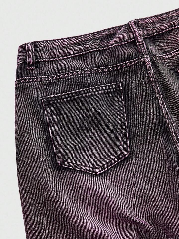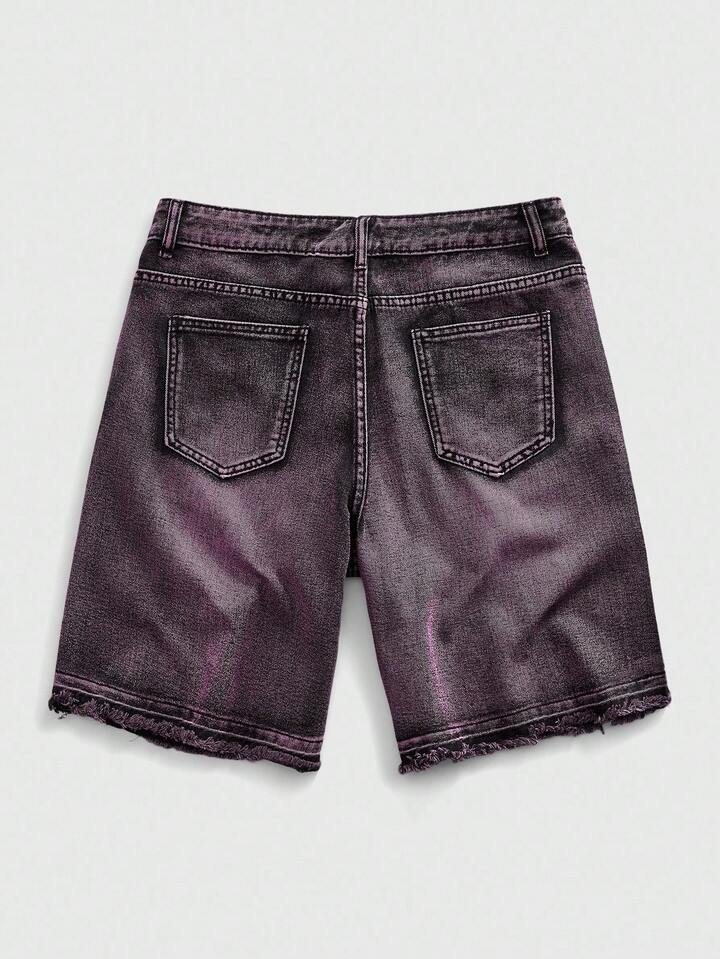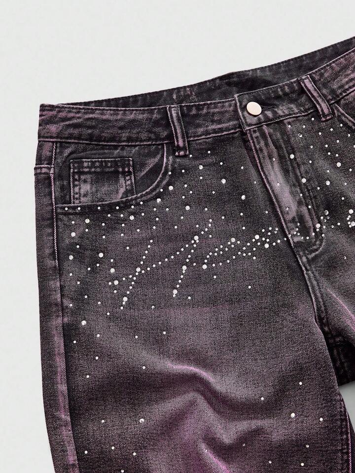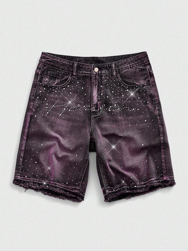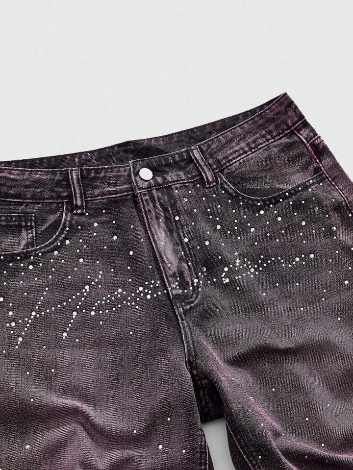 Street Life Pantaloncini di jeans larghi da uomo con grafica di lettere e strass sulla tasca