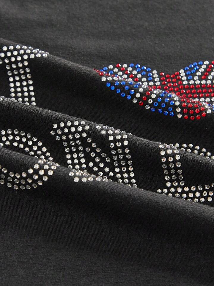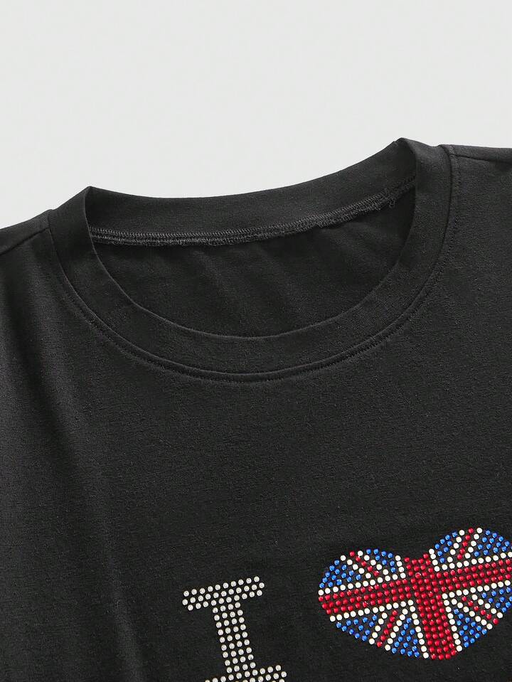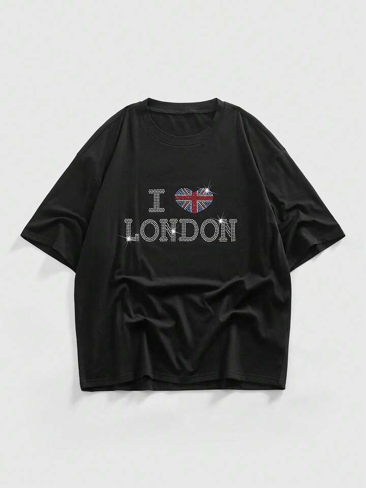 Street Life T-shirt casual da uomo a maniche corte con scollo rotondo e stampa di lettere con strass