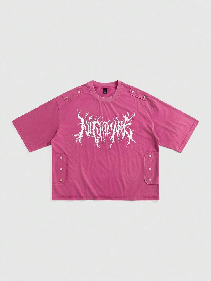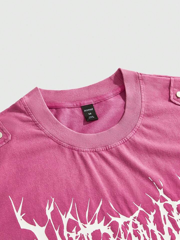 Street Life T-shirt corta e ampia da uomo con stampa gotica e rivetti, stile Ognissanti
