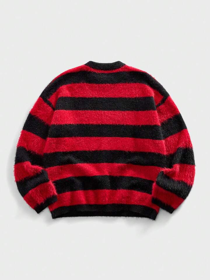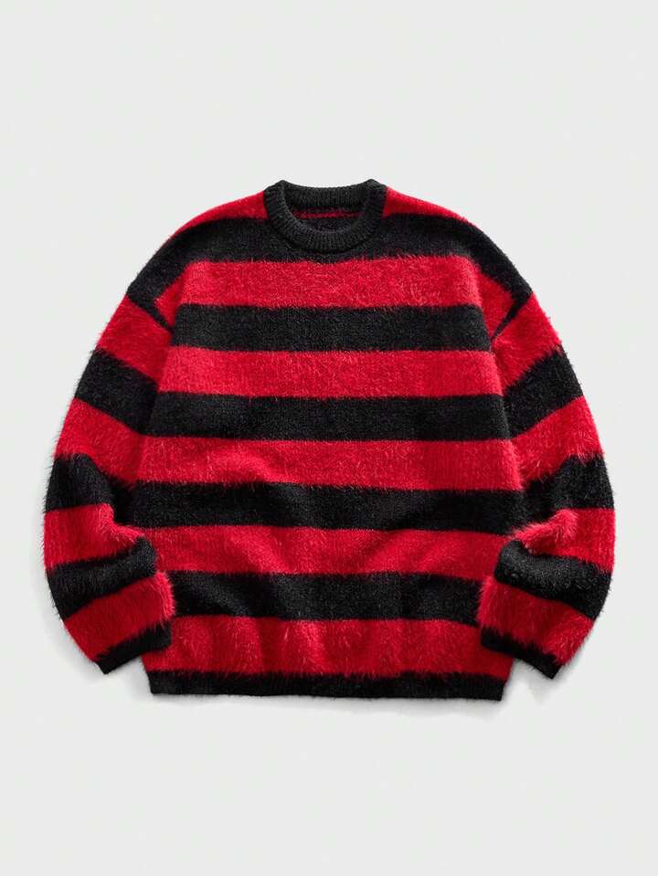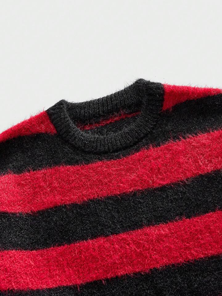 Street Life Maglione casual da uomo a girocollo, a maniche lunghe, a righe nere e rosse, adatto per l'autunno/inverno