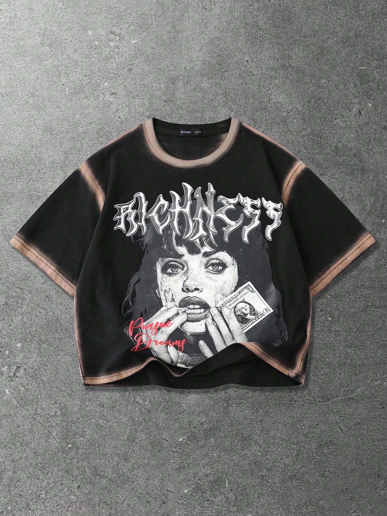 Street Life T-shirt da uomo a girocollo con maniche corte, moda versatile con stampa a spruzzo fatta a mano, vestibilità morbida, estiva