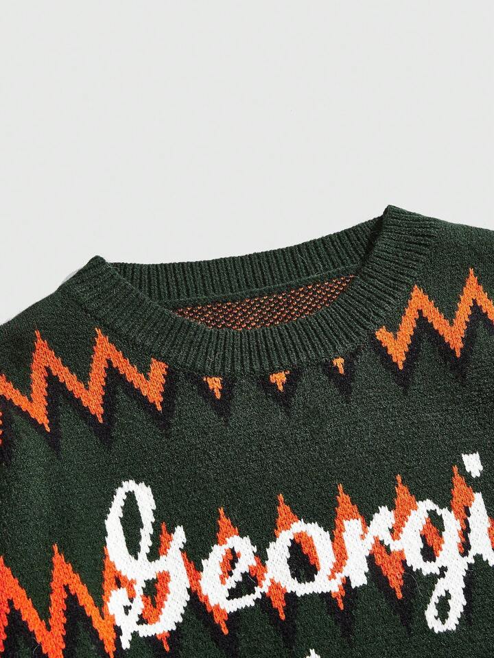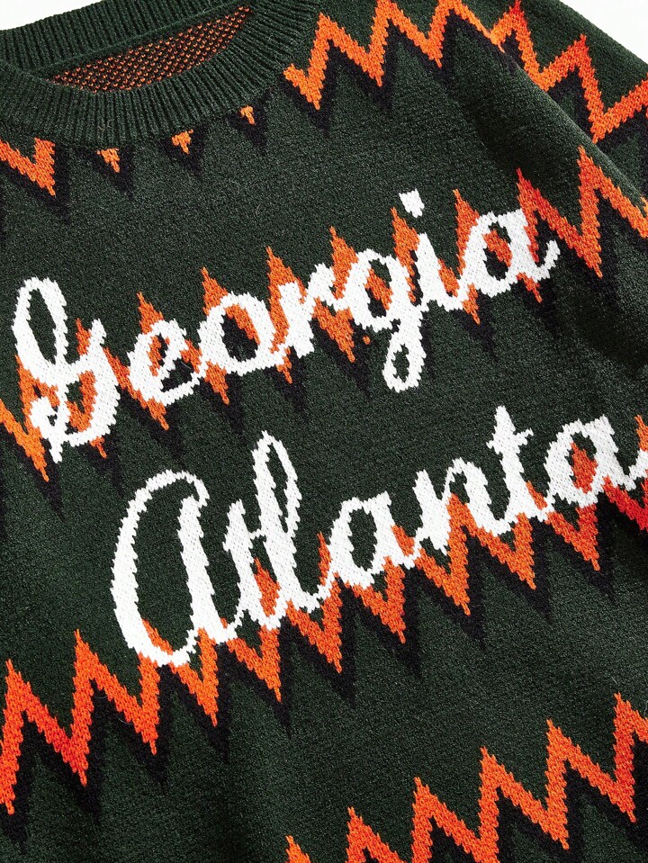 Street Life Maglione da uomo a girocollo con fantasia a righe e lettera jacquard