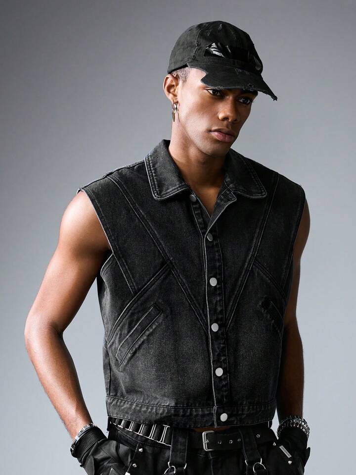 Street Life Gilet casual in jeans monopetto con bavero per uomo