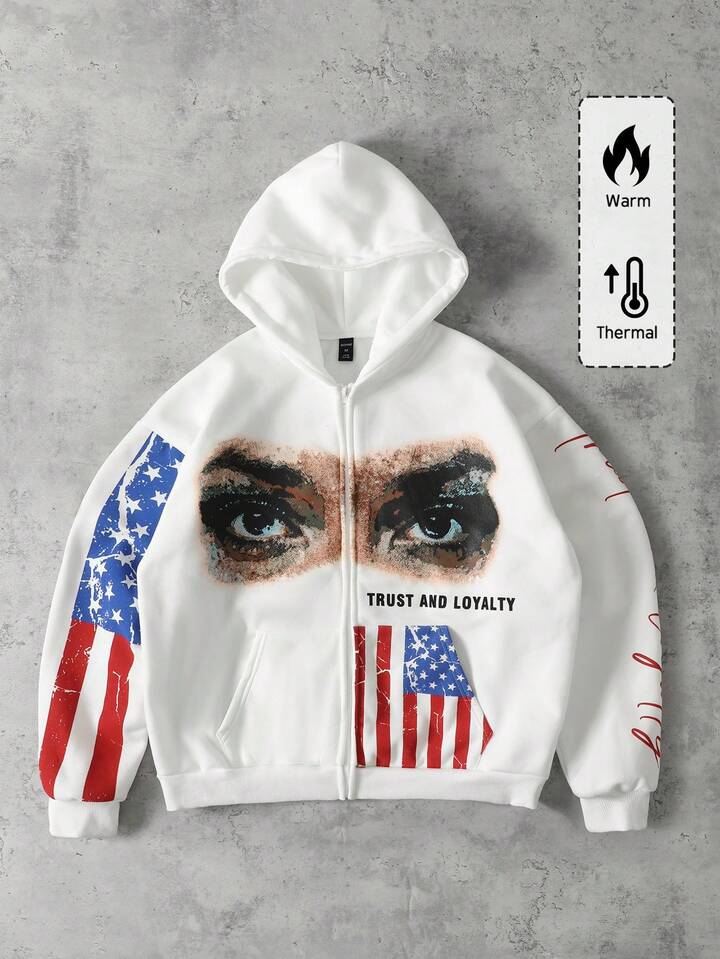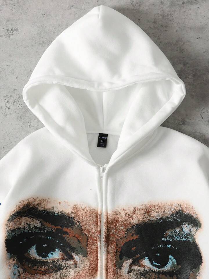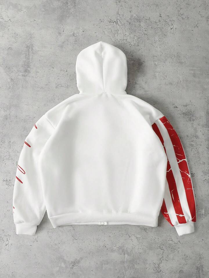 Street Life Felpa con cappuccio casual da uomo con chiusura lampo, con stampa di slogan e figure