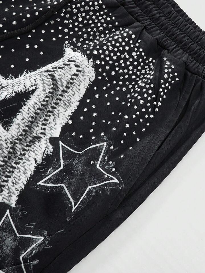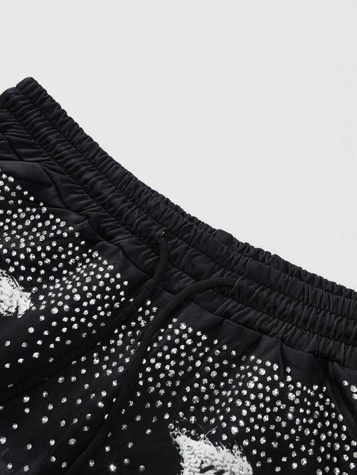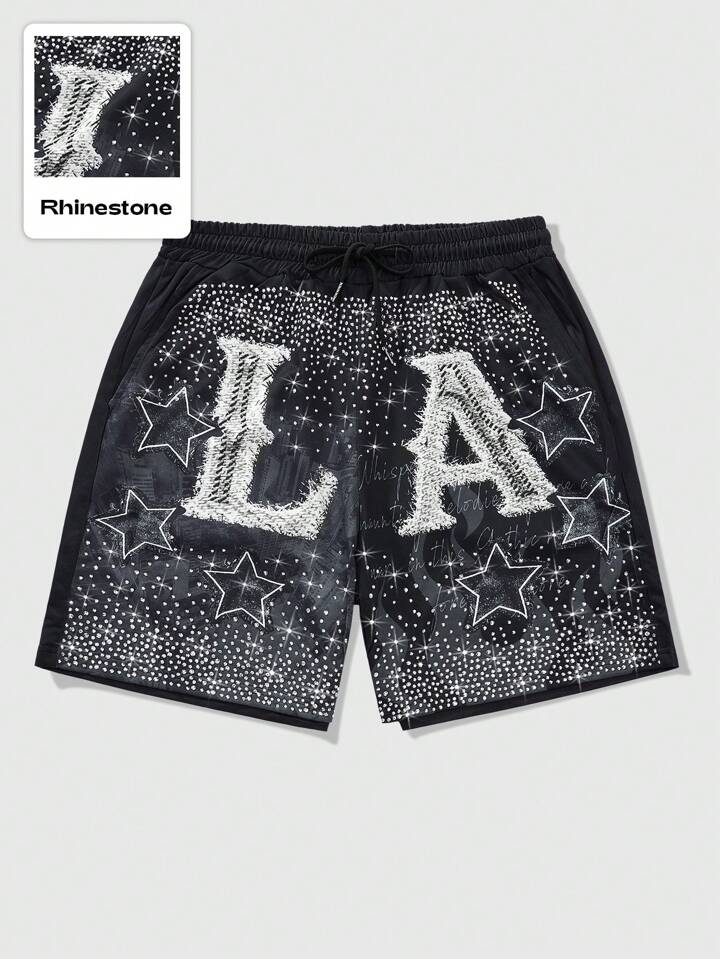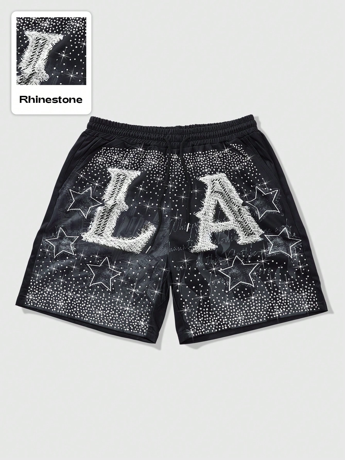 Street Life Pantaloncini casual da uomo con stampa di slogan e decorazioni di strass, adatti per la primavera e l'estate