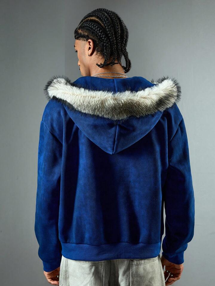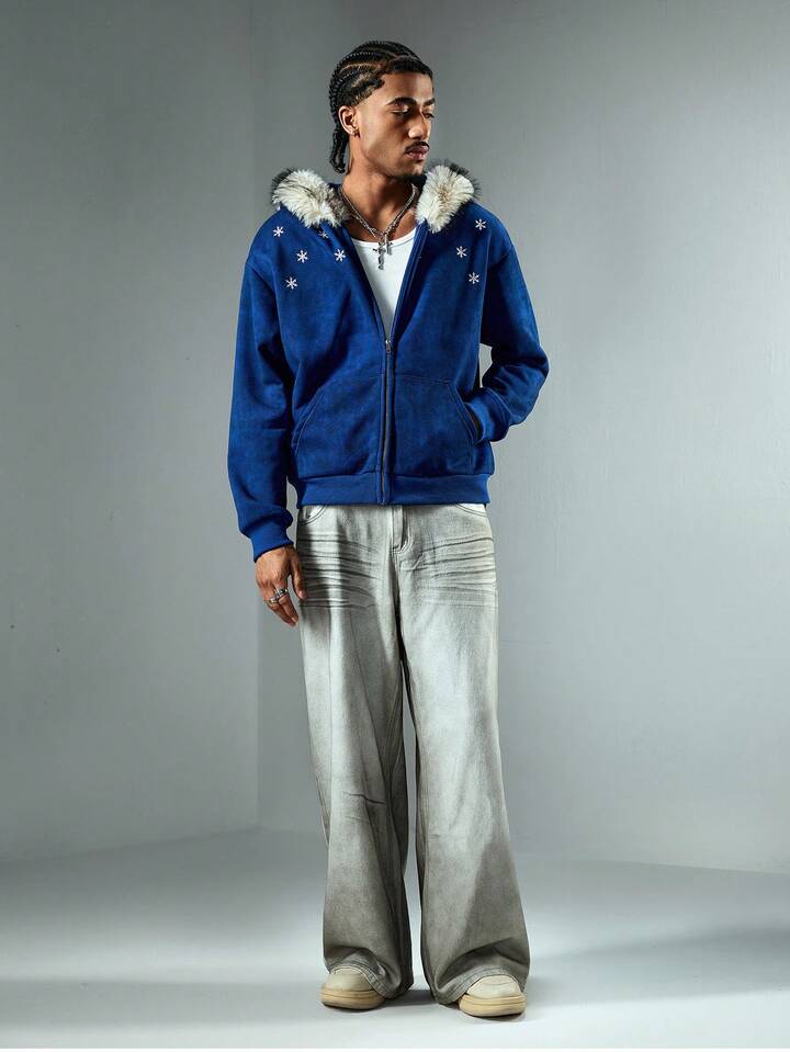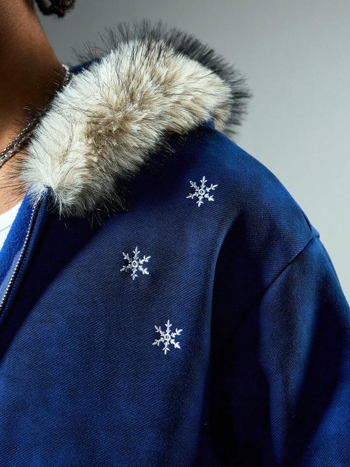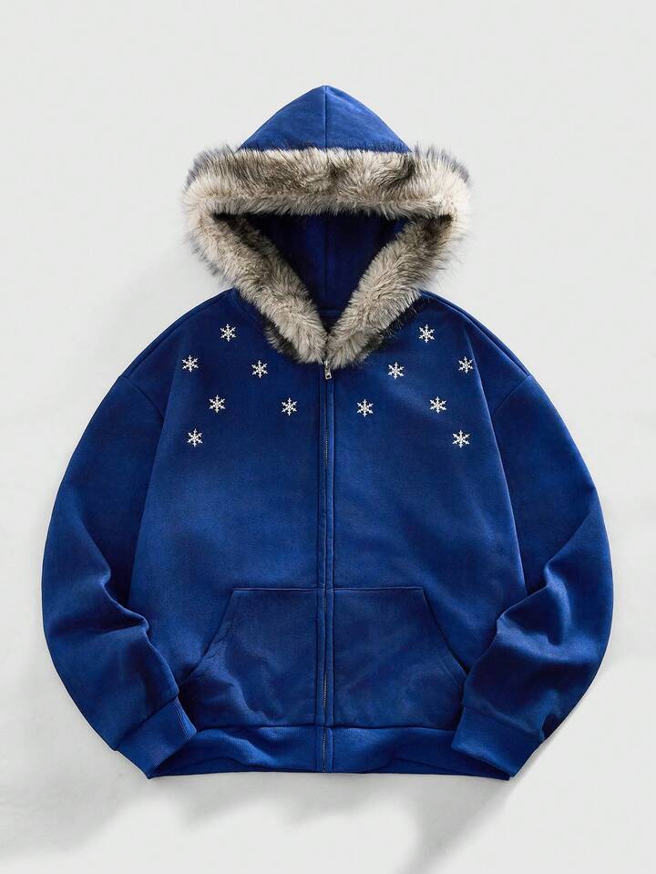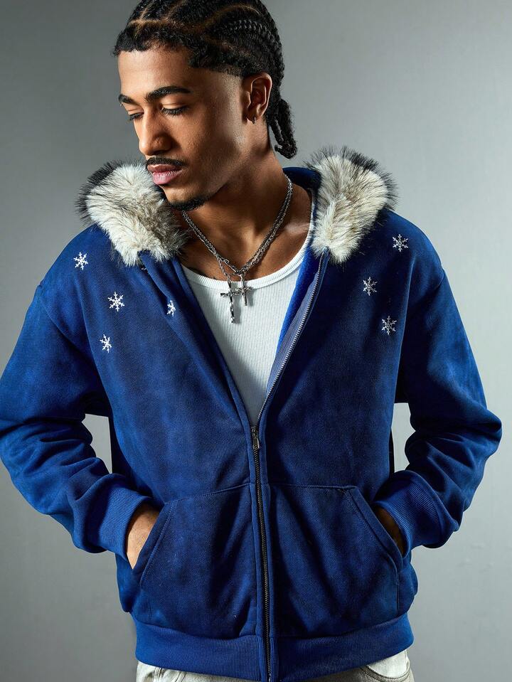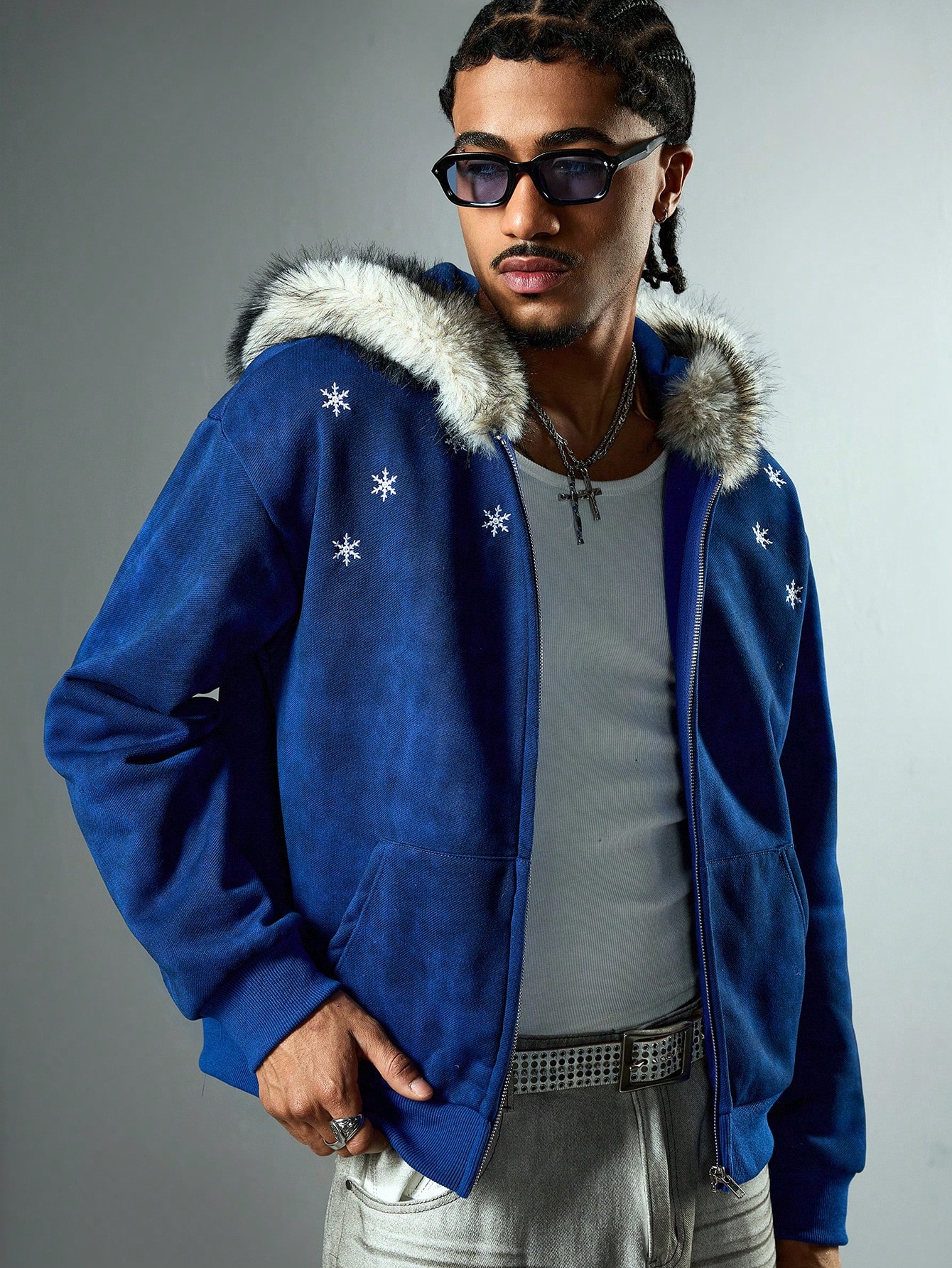 Street Life Felpa con cappuccio in pile con ricamo a fiocco di neve da uomo