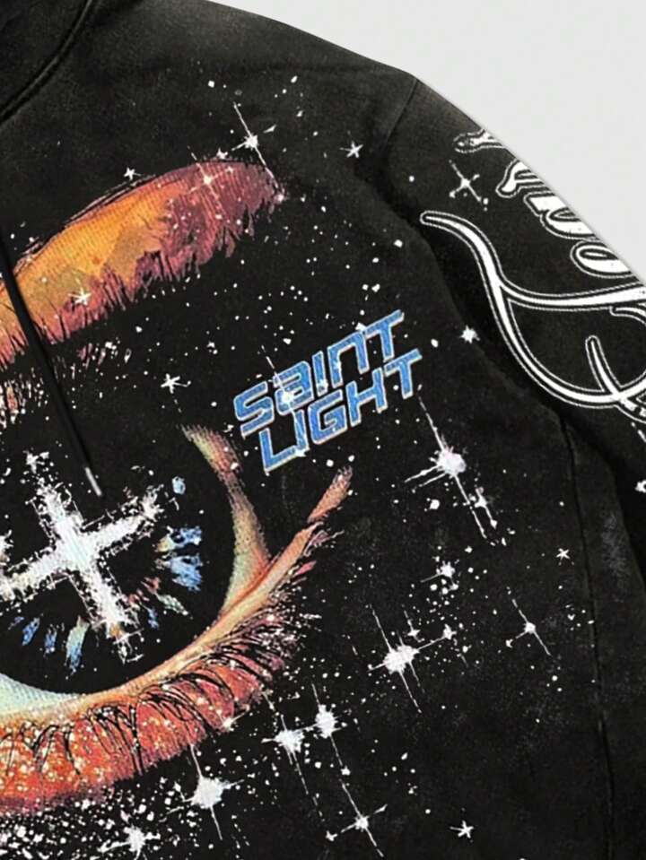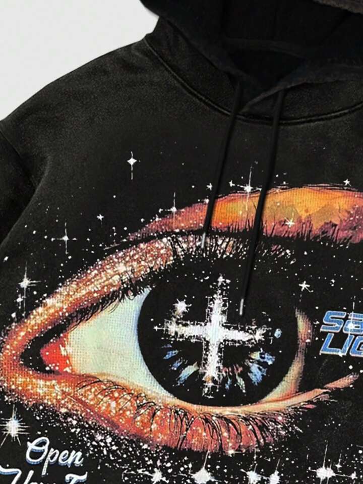 Street Life Felpa con cappuccio da uomo con grafica a fiocco di neve e occhio, abbigliamento casual per autunno/inverno