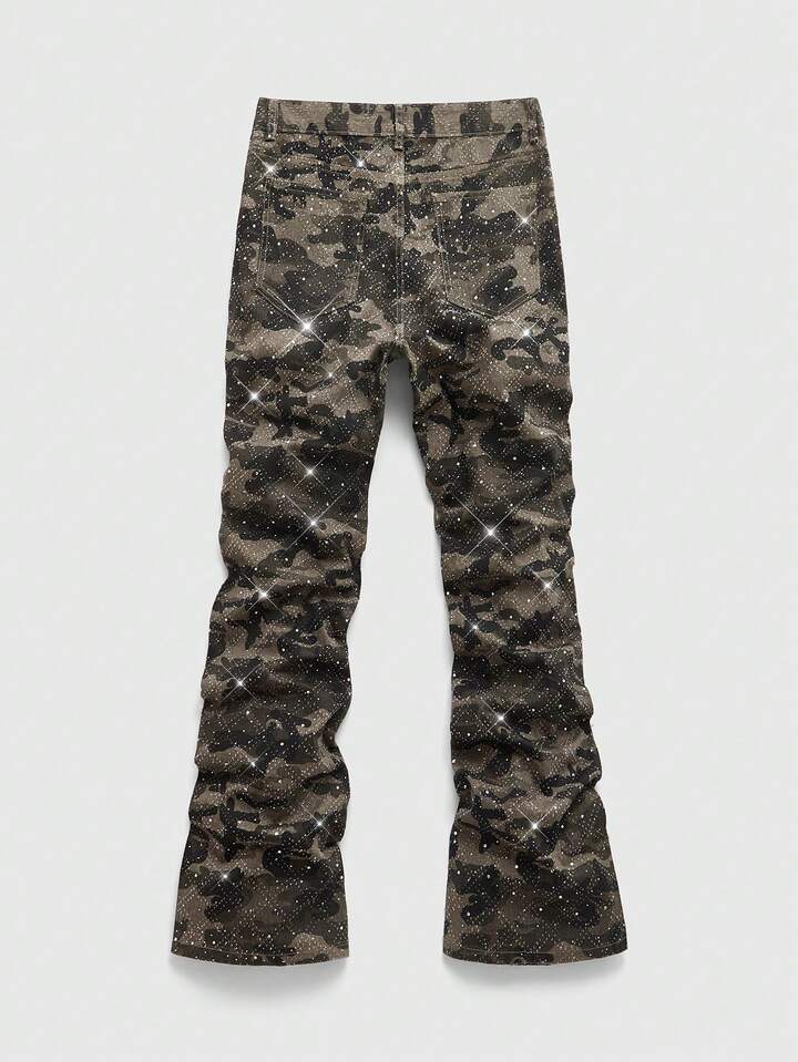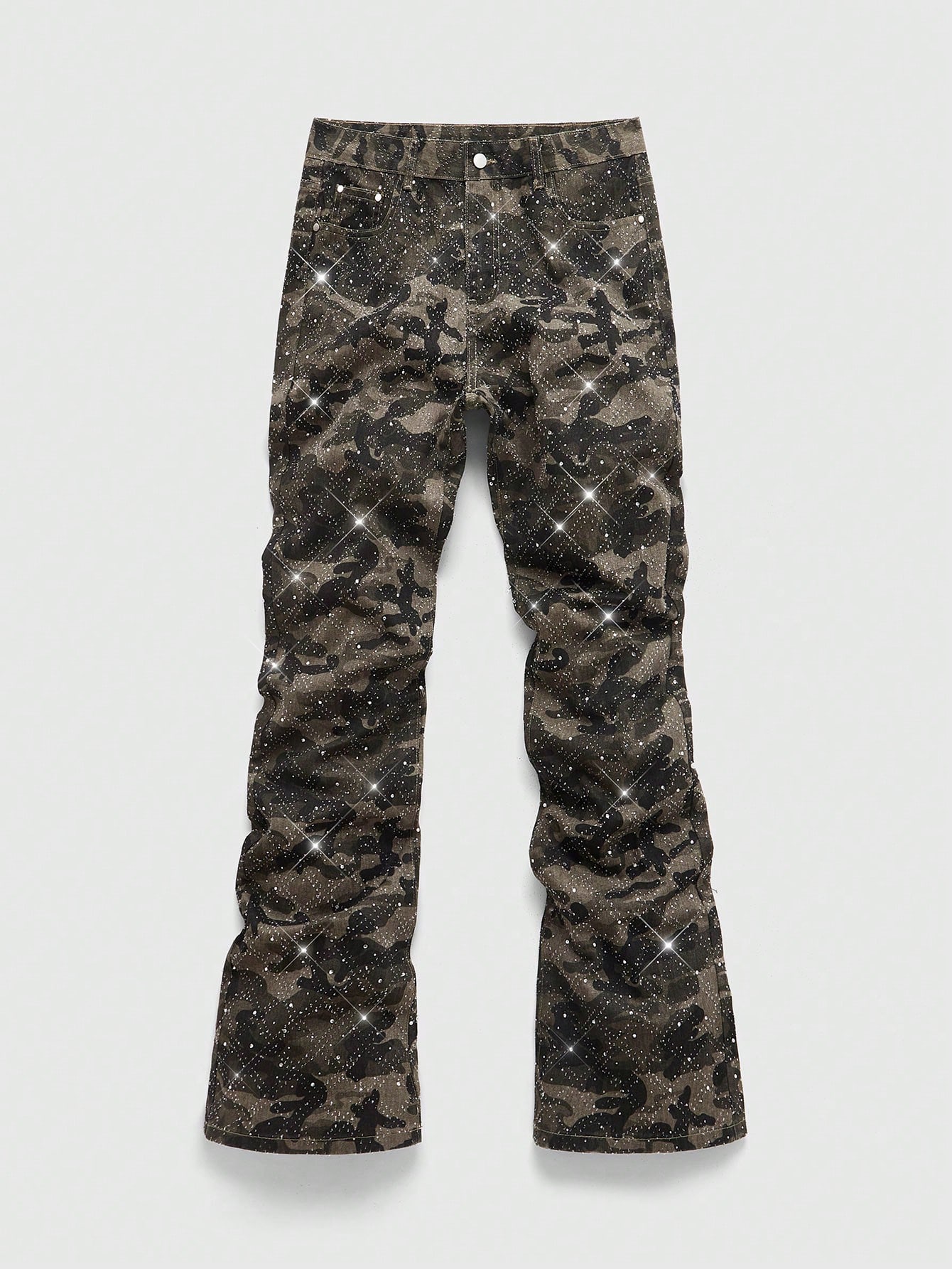 Street Life Jeans da uomo con diamanti scintillanti e motivo mimetico a strati