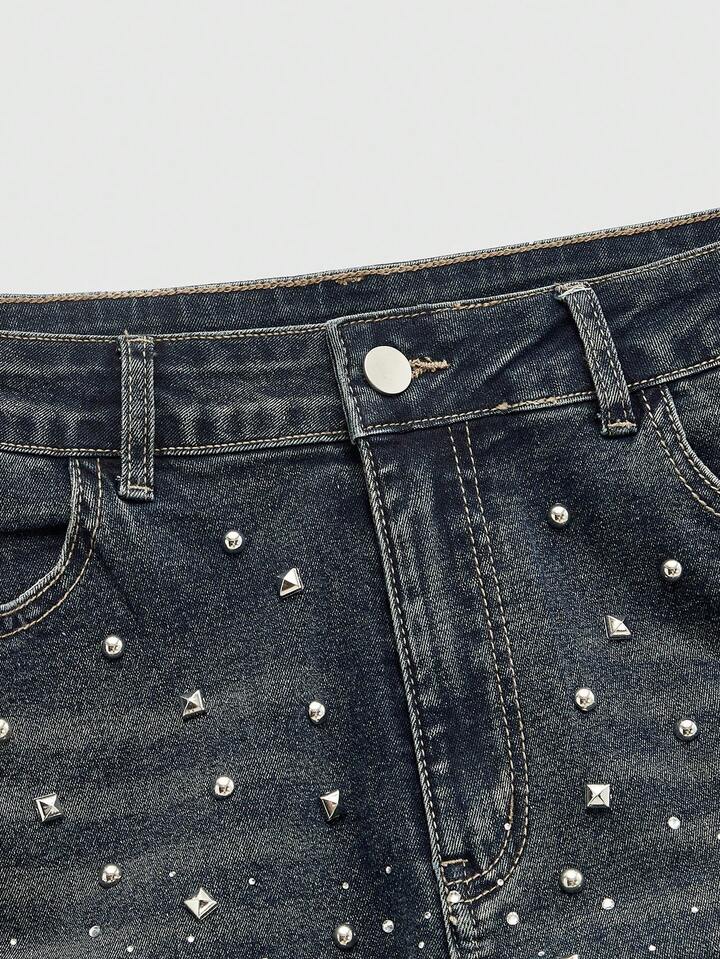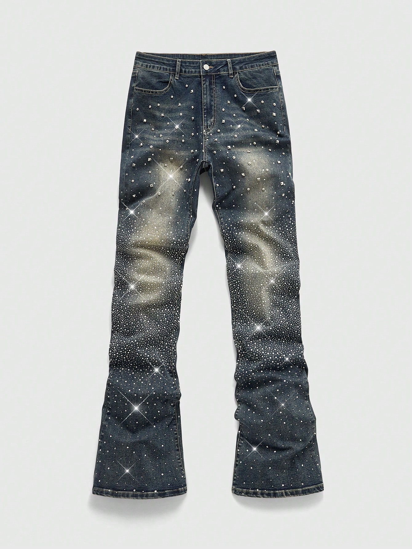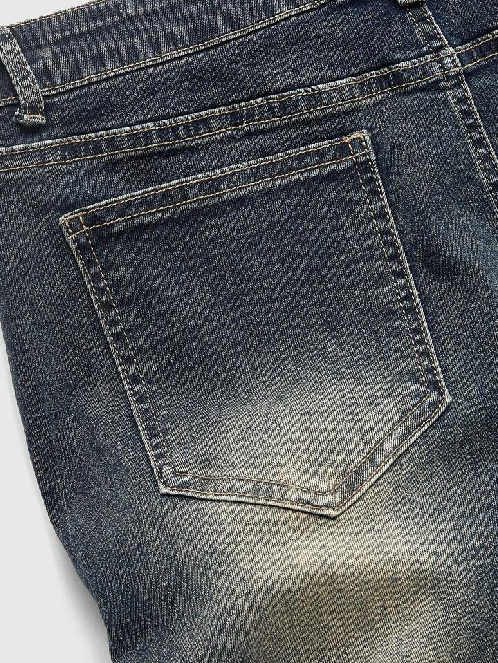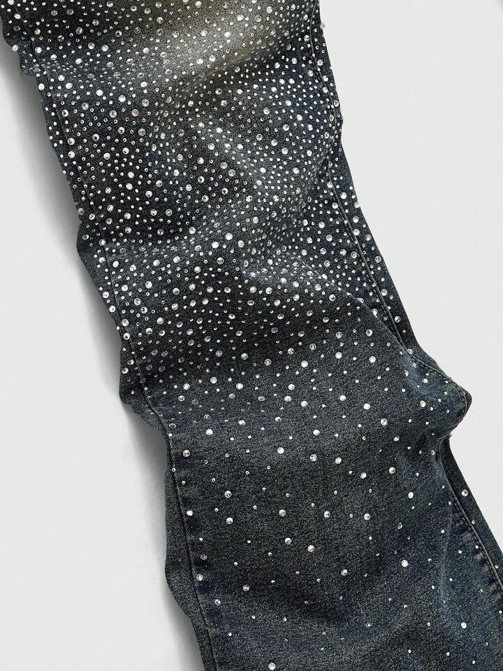 Street Life Jeans da uomo con diamanti scintillanti e design a strati con risvolto