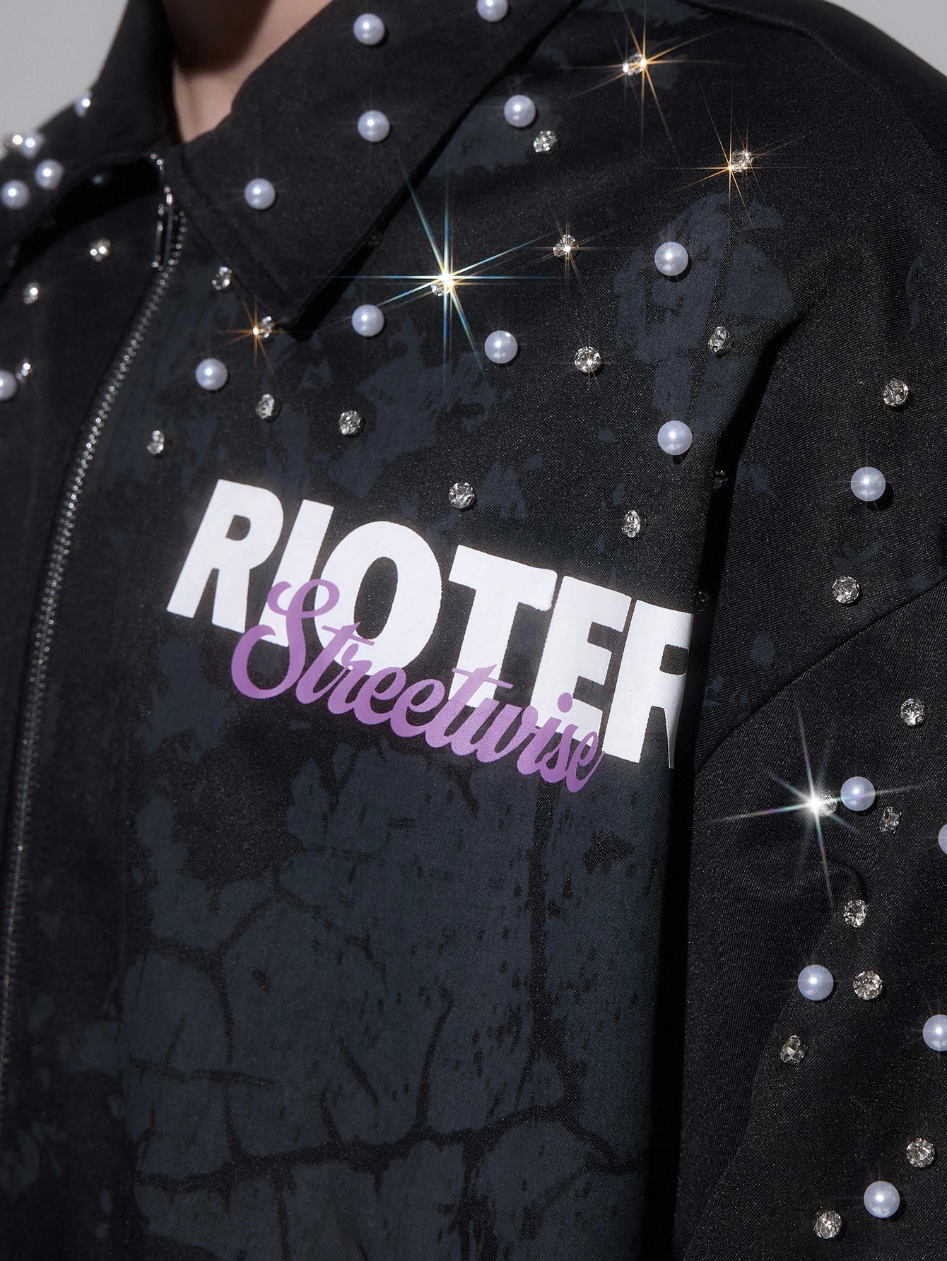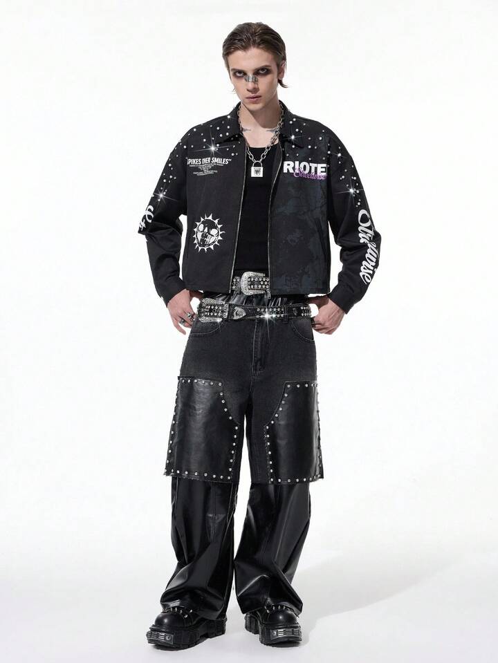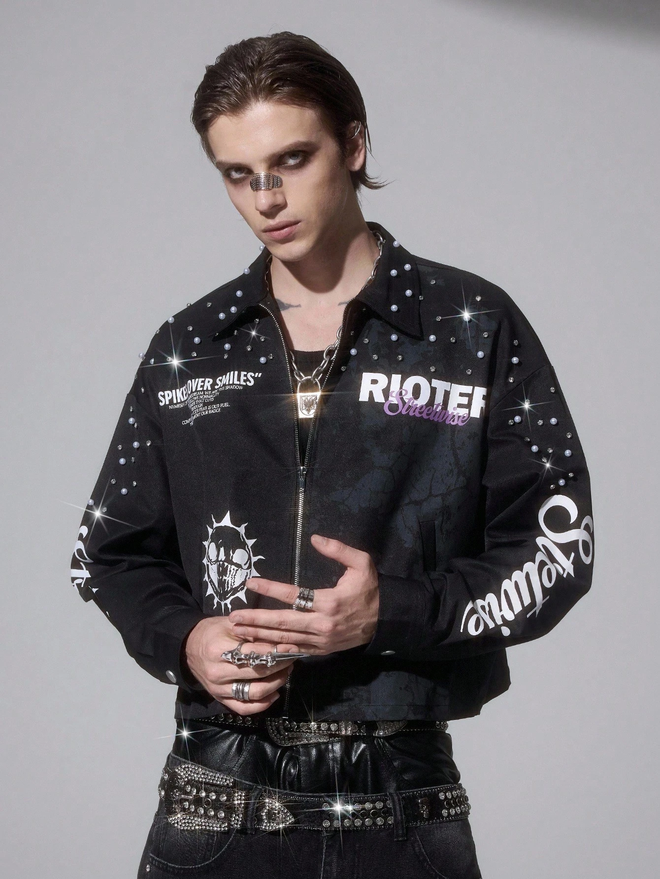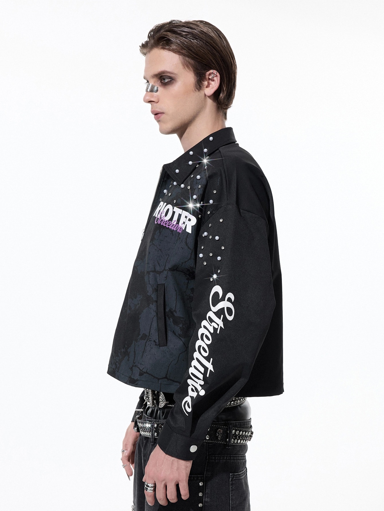 Street Life Giacca da uomo con stampa di diamanti e perle scintillanti, stile oversize corto, adatta per l'autunno