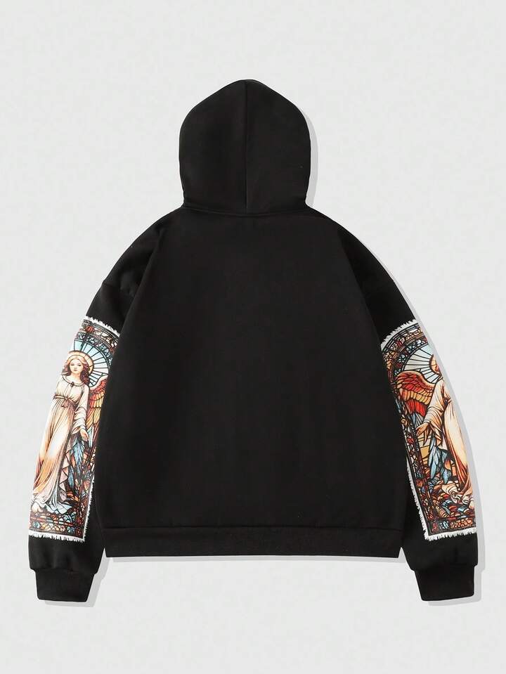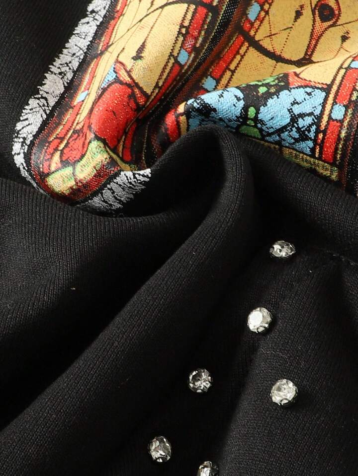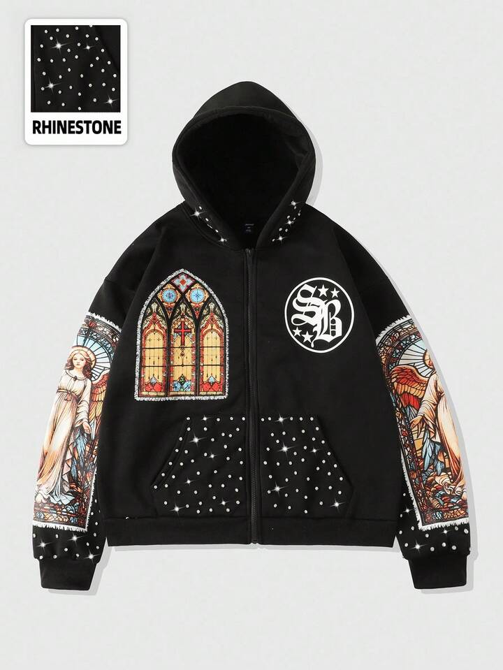 Street Life Felpa oversize da uomo con stampa di diamanti scintillanti e motivi religiosi, stile corto, adatta per l'autunno