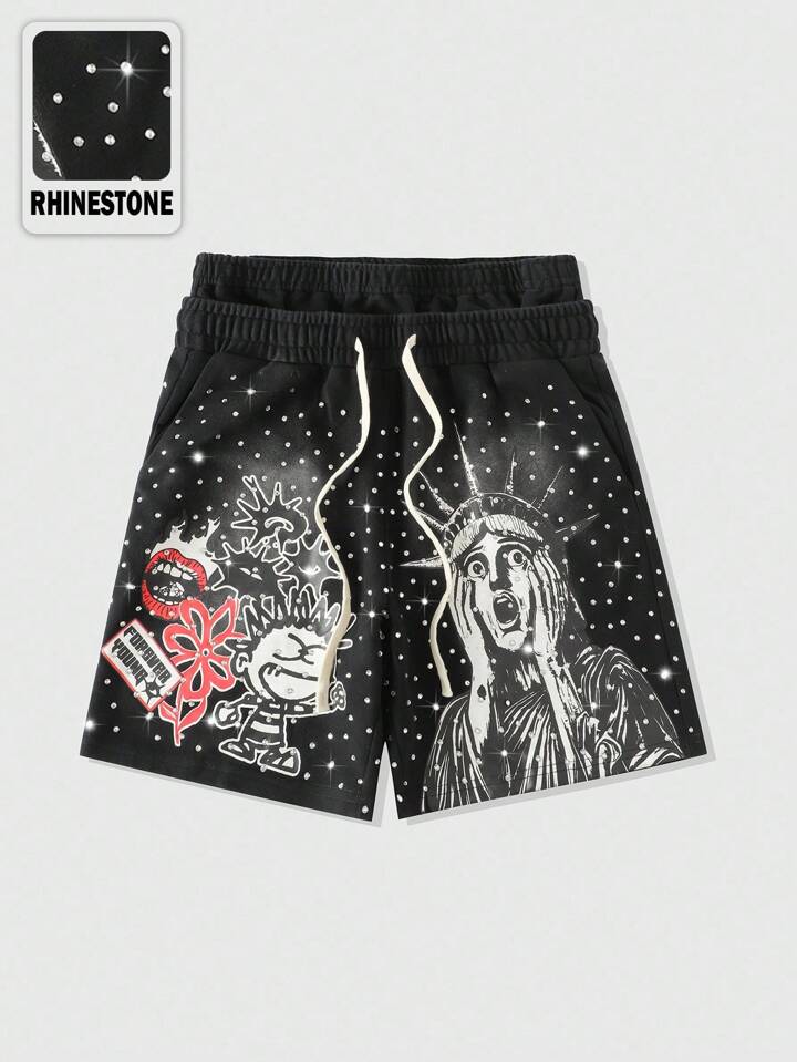 Street Life Pantaloncini da uomo con cintura stampata con diamanti scintillanti