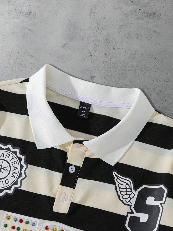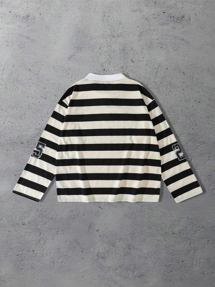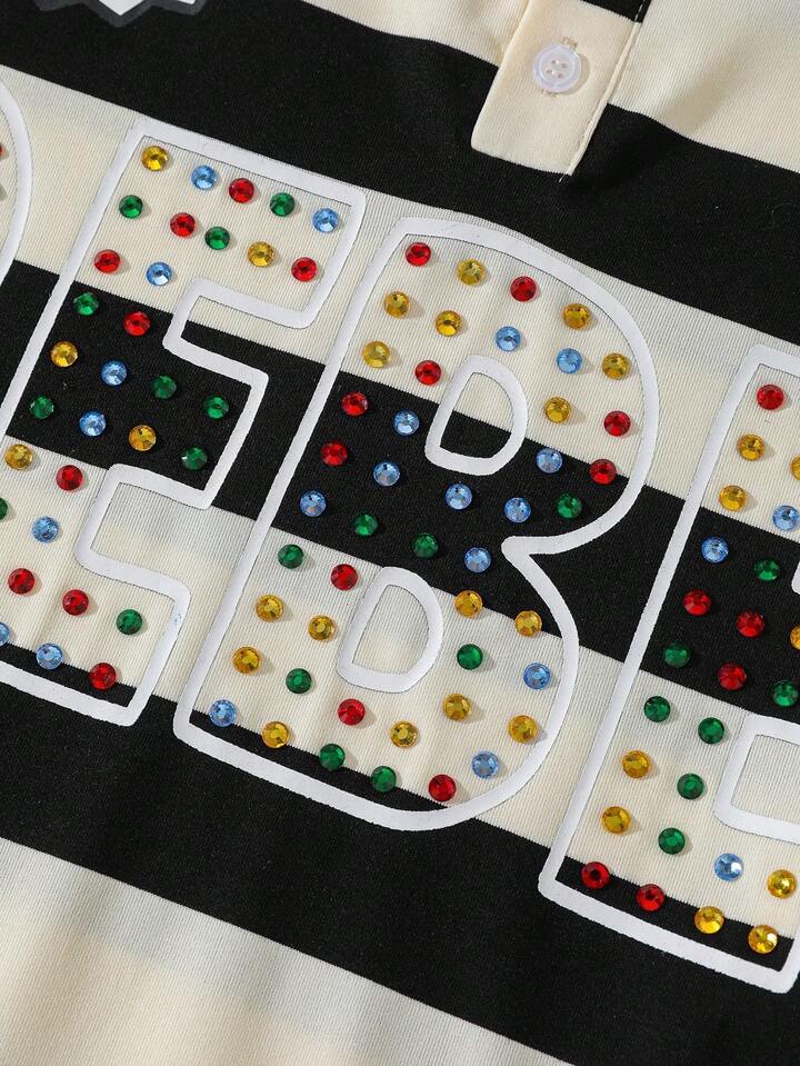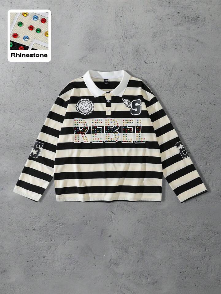 Street Life Camicia polo a maniche lunghe con strisce di diamanti scintillanti, vestibilità ampia, adatta per l'autunno