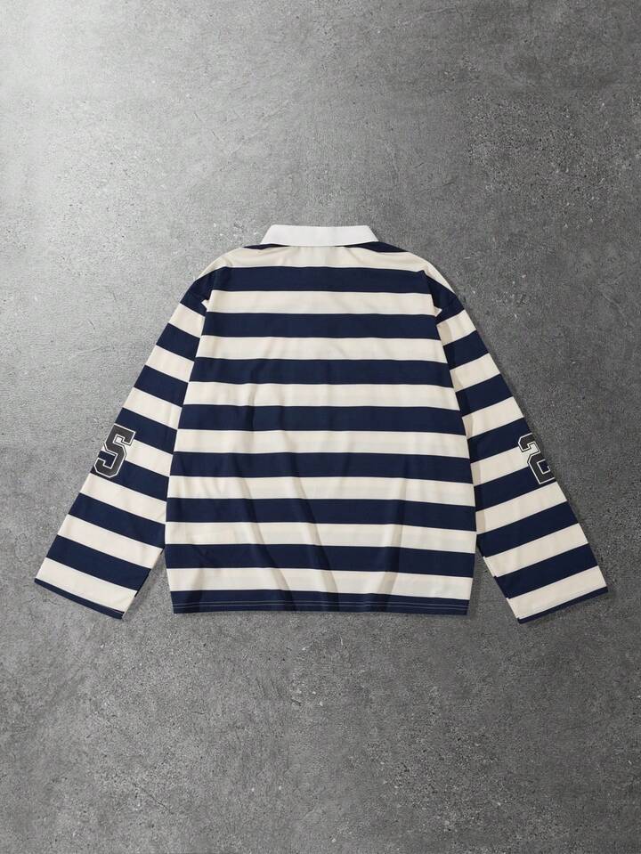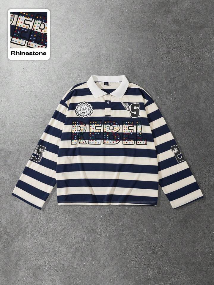 Street Life Camicia polo a maniche lunghe con vestibilità ampia e righe scintillanti con diamanti per uomo