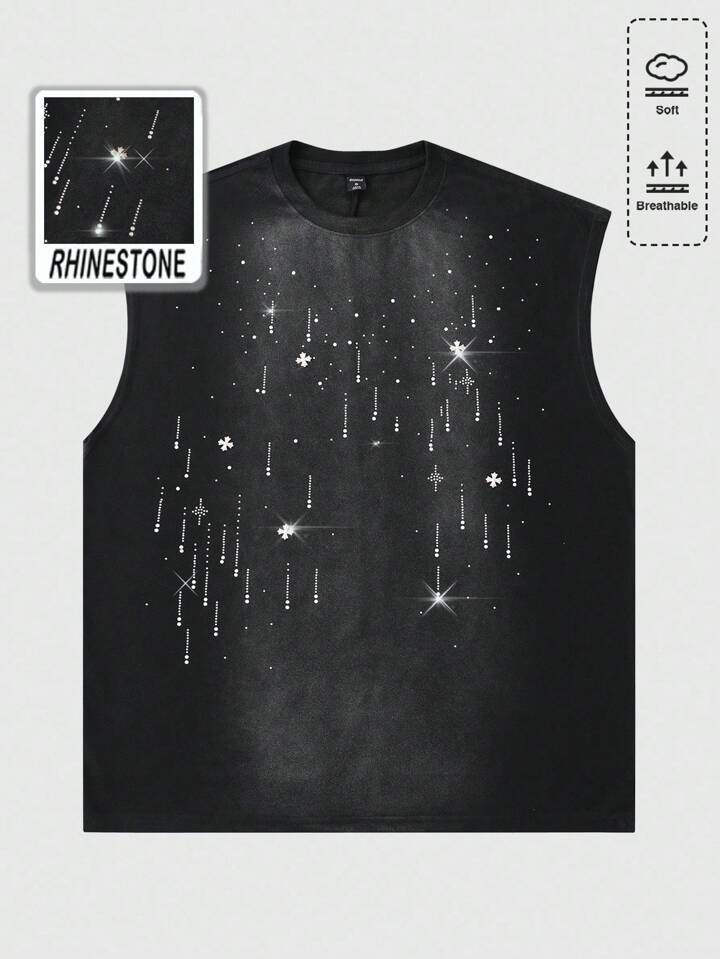 Street Life Canotta larga da uomo con diamanti scintillanti, stile anni 2000