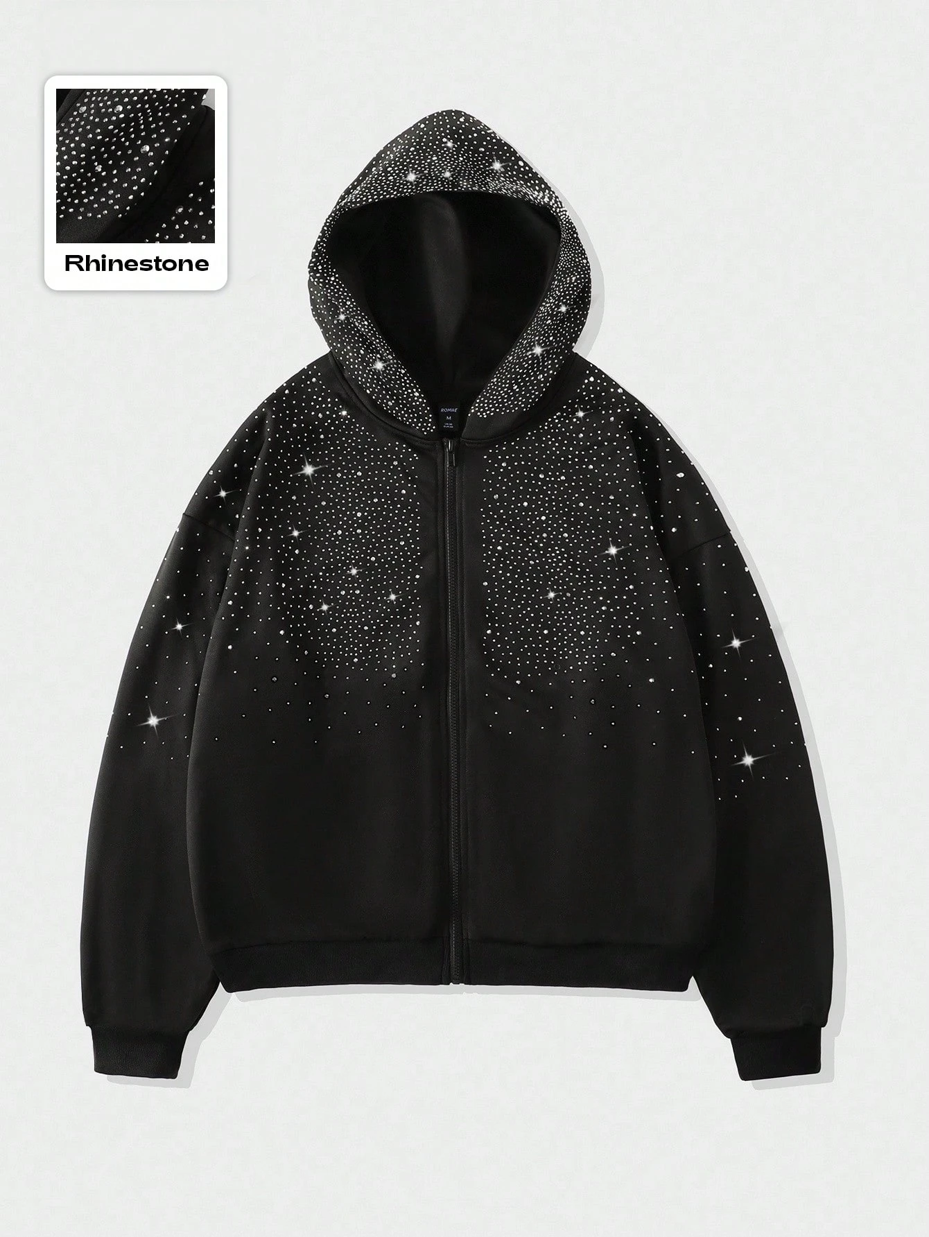 Street Life Felpa da uomo con diamanti scintillanti, stile oversize e corto