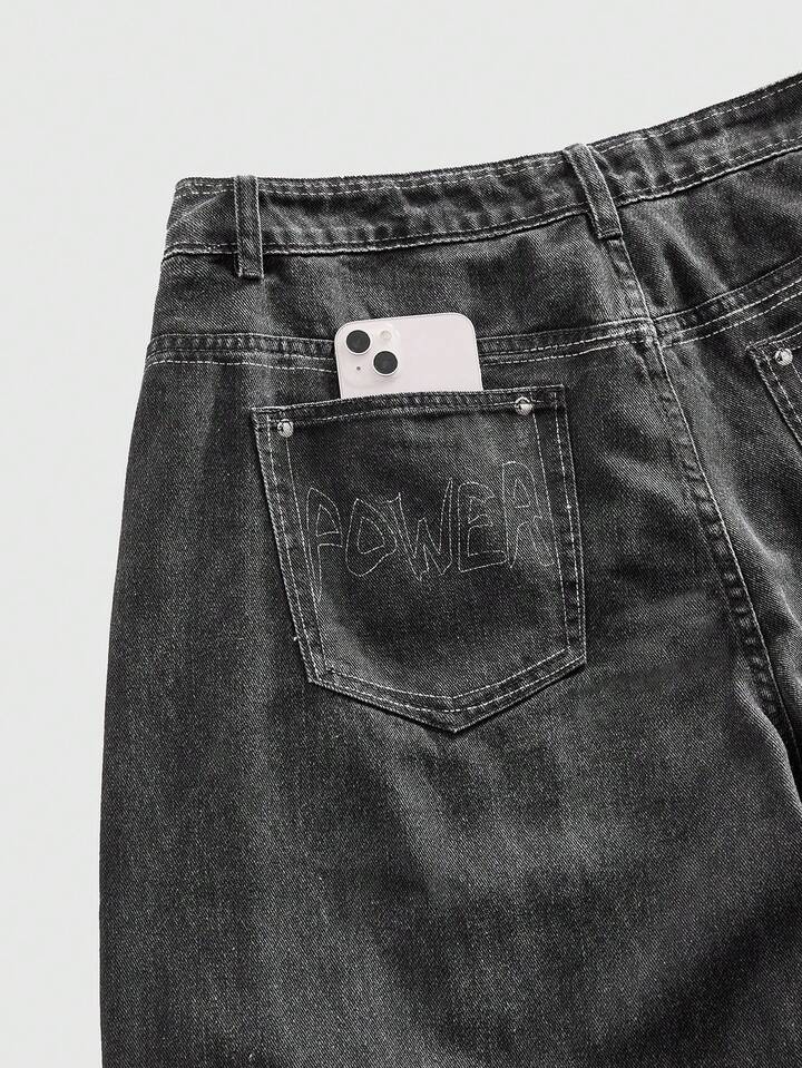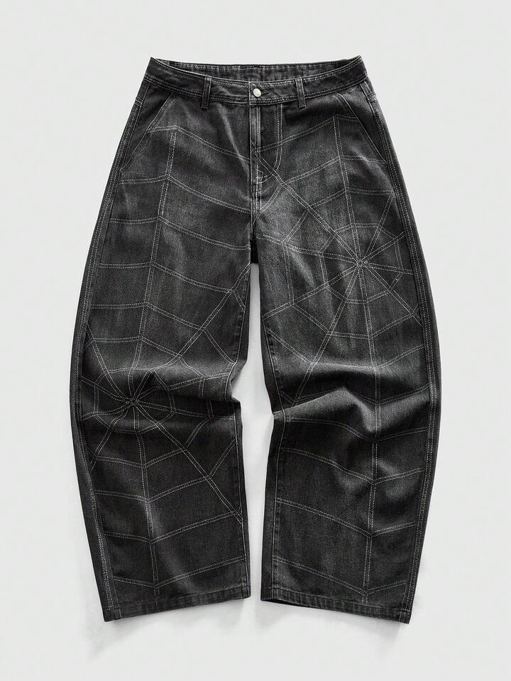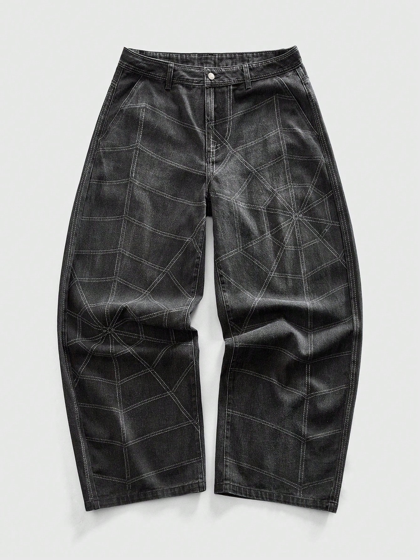 Street Life Jeans in denim con stampa digitale a ragnatela e chiusura con fibbia per uomo