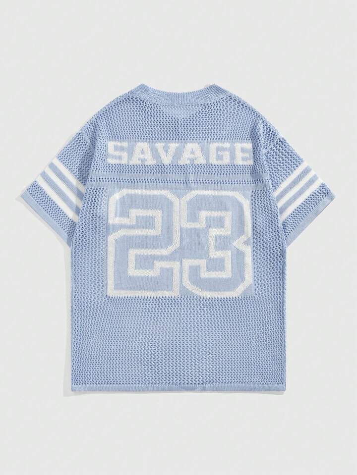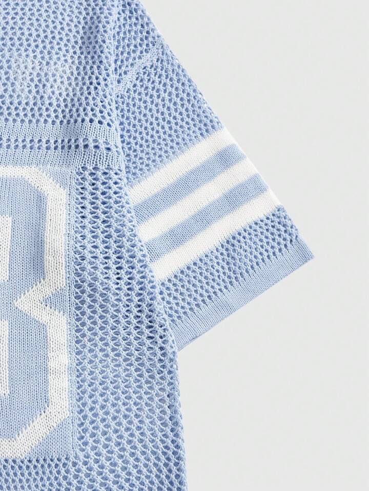 Street Life Maglione lavorato a maglia casual da uomo, a maniche corte, in stile jacquard con motivo traforato, per primavera ed estate