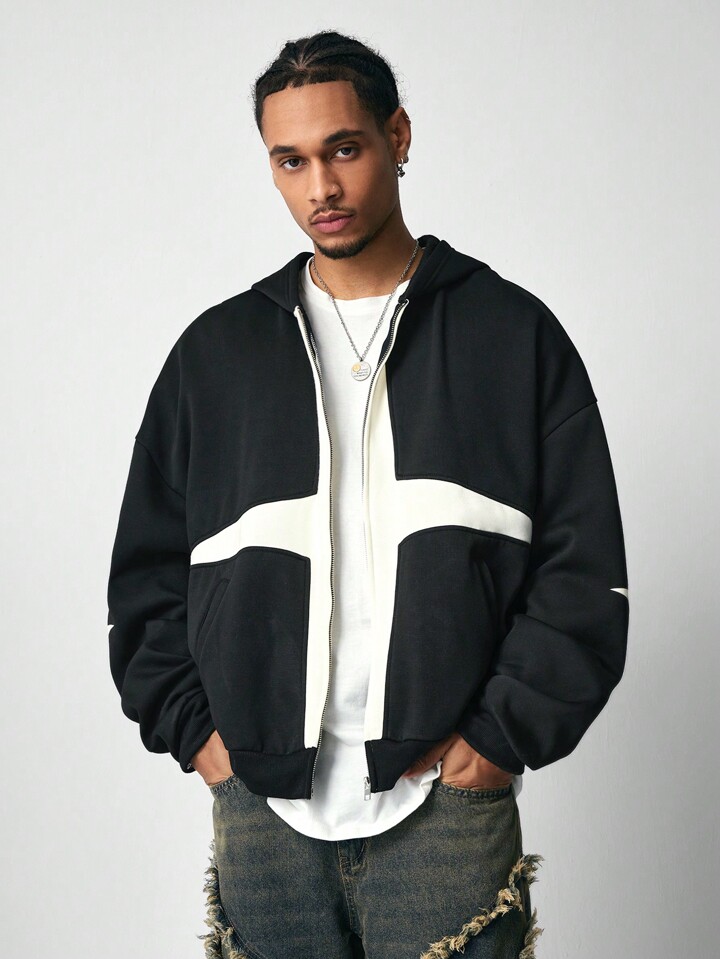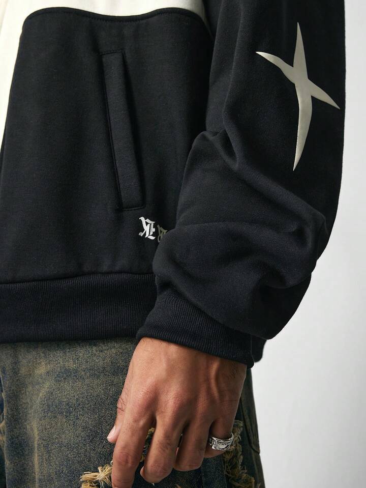 Street Life Uomo Felpa con cappuccio con chiusura lampo frontale, vestibilità morbida, stampa a stelle, adatta per autunno/inverno