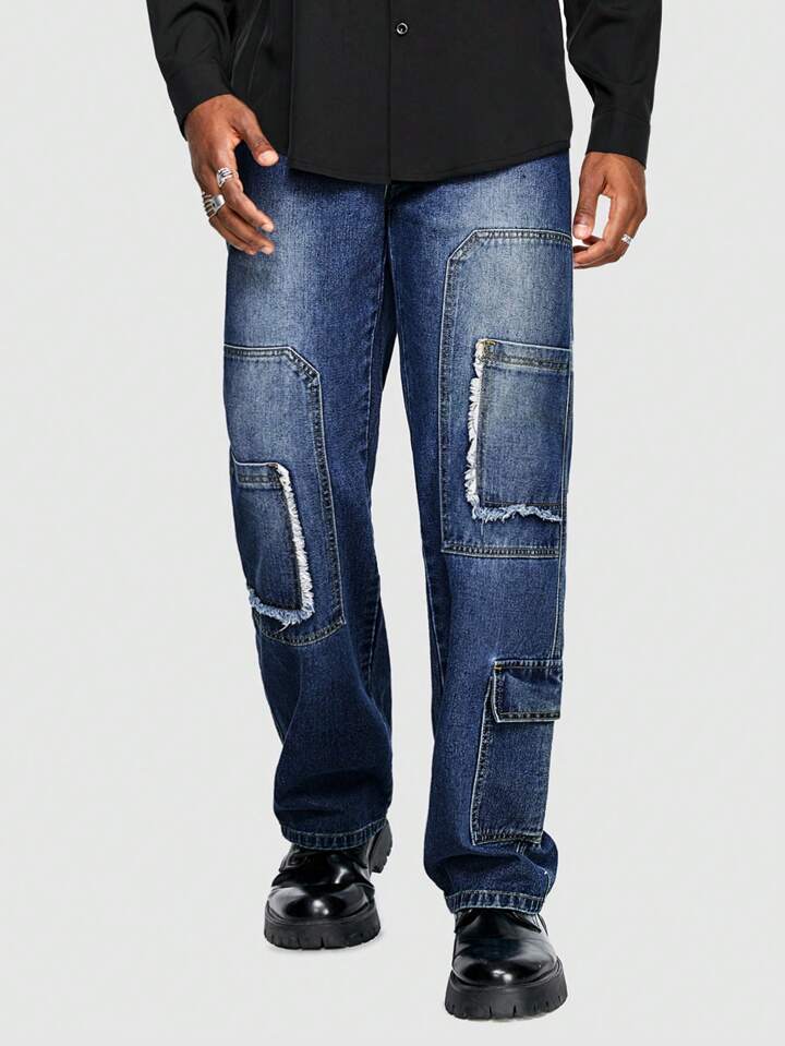 Street Life Jeans Dritti Da Uomo Con Tasche A Toppa