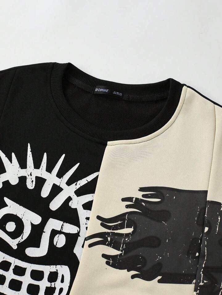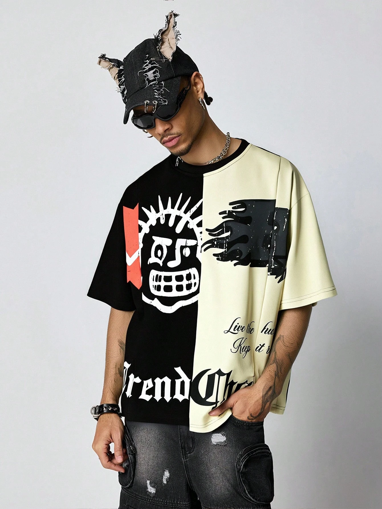 Street Life Maglietta a crop top uomo con stampa asimmetrica a contrasto di colori, modello ampio