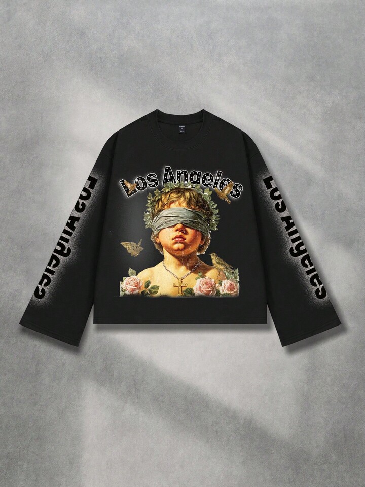 Street Life Maglietta a maniche lunghe da uomo con stampa scura, vestibilità ampia e corta, adatta per l'autunno