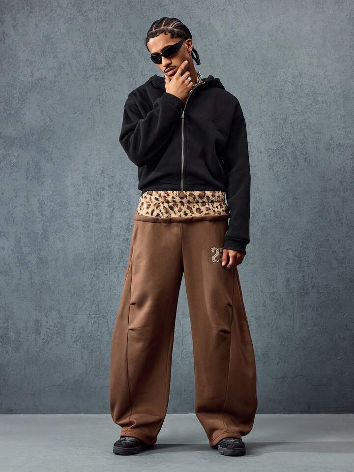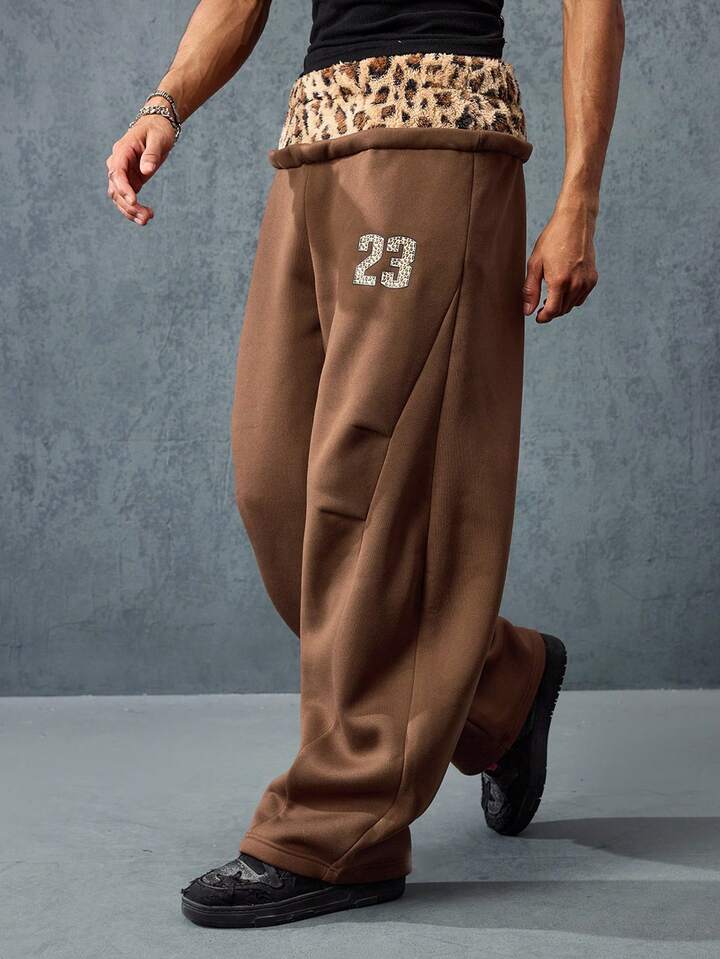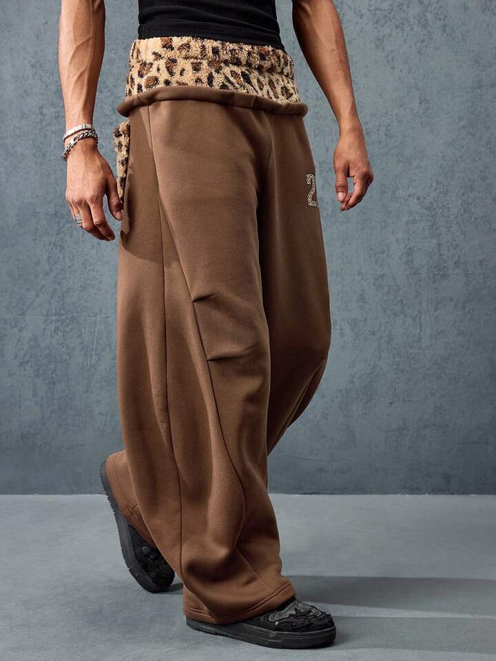 Street Life Pantaloni della tuta casual da uomo di moda di strada, con patchwork e design curvo