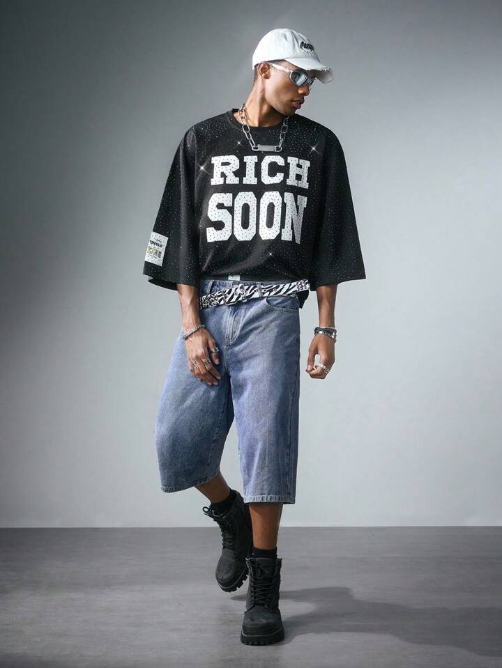 Street Life Jeans da uomo con motivo a stella a cinque punte, alla moda per l'estate