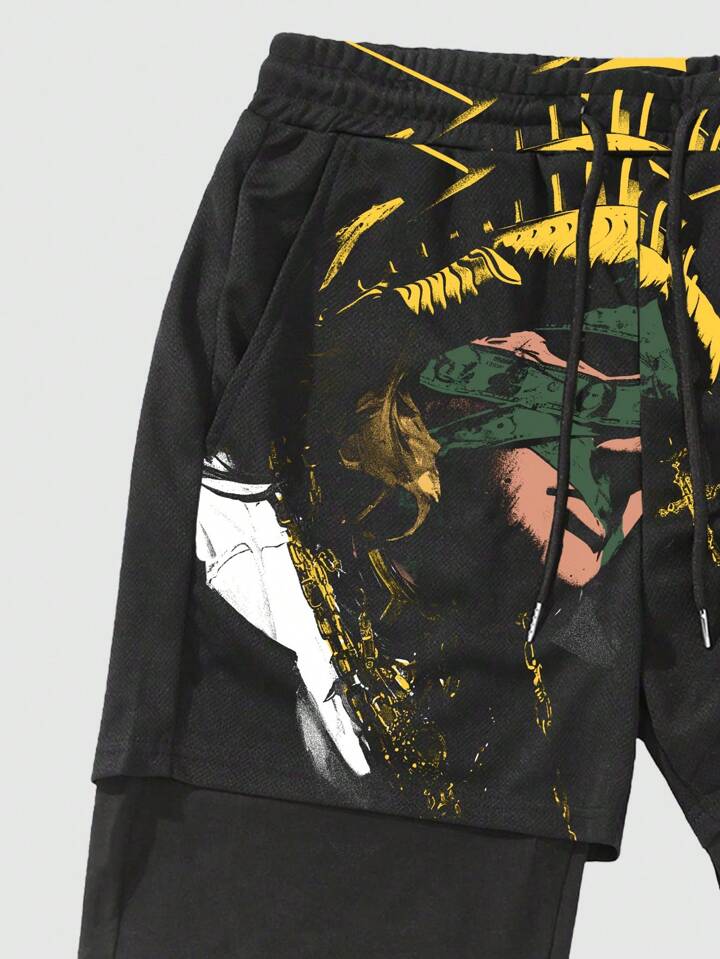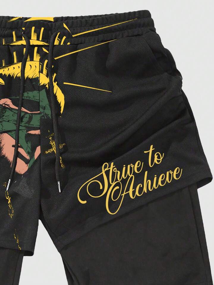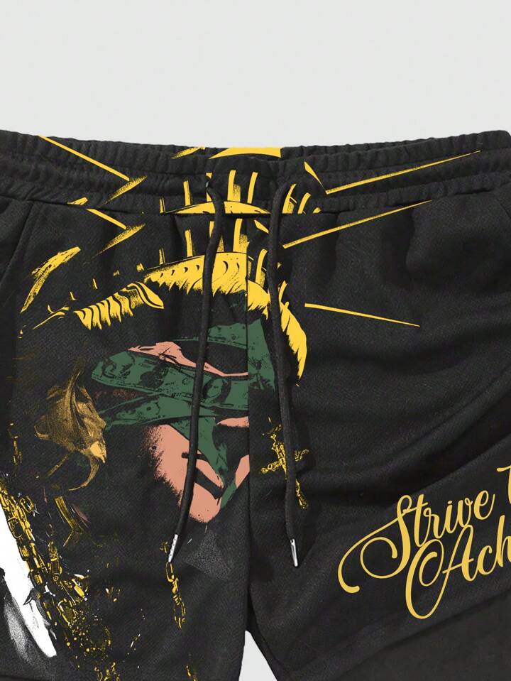 Street Life Pantaloncini casual da uomo con stampa a slogan e vita con coulisse