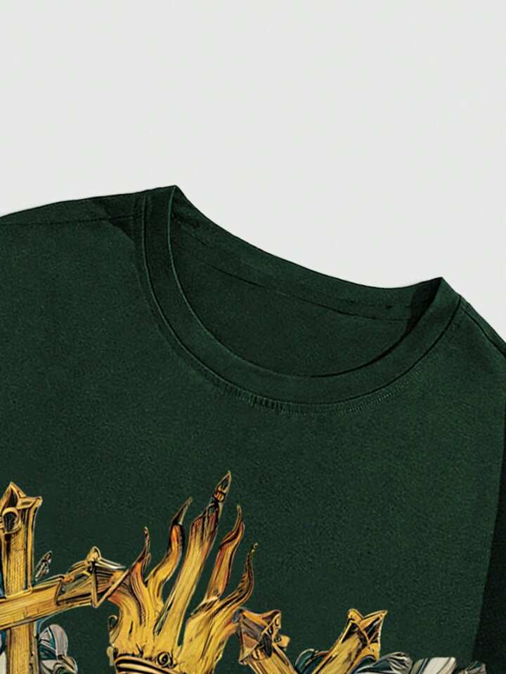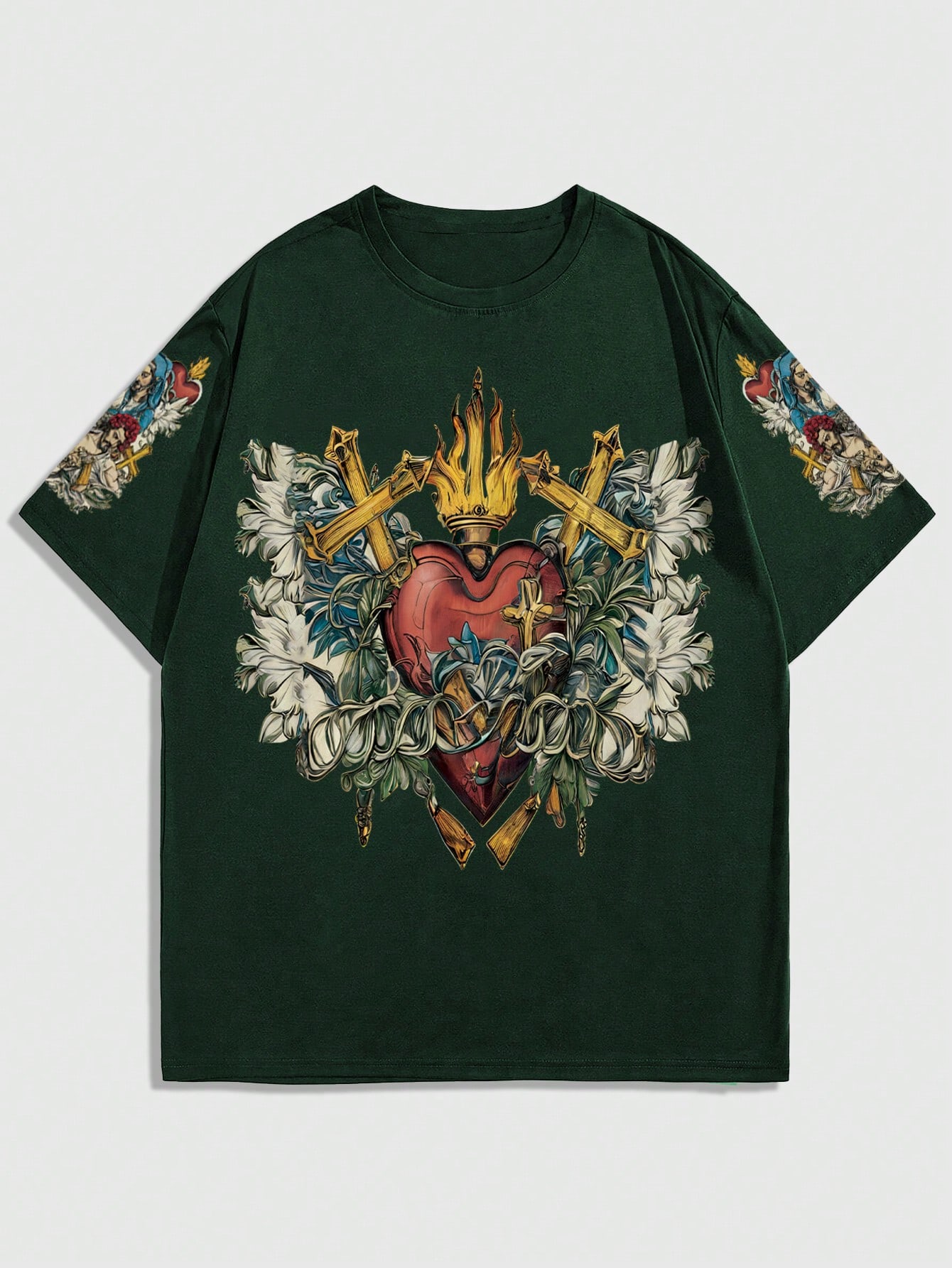 Street Life Maglietta con stampa a motivo di cuori in stile americano retrò, streetwear da uomo