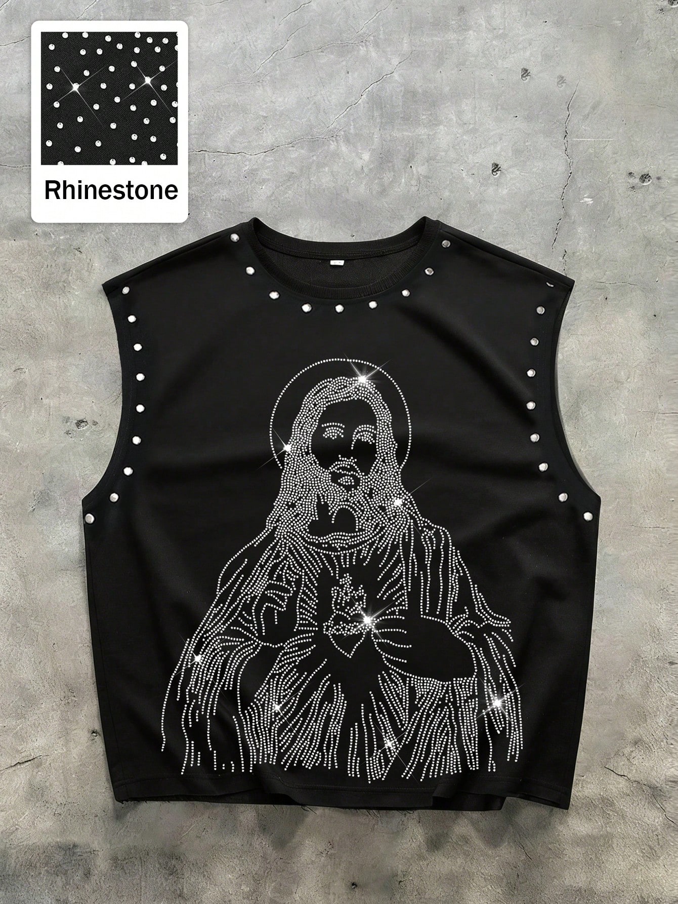 Street Life Canotta senza maniche da uomo, stile casual di strada, con motivo di strass di Gesù e design con borchie, adatta per uso quotidiano e palestra