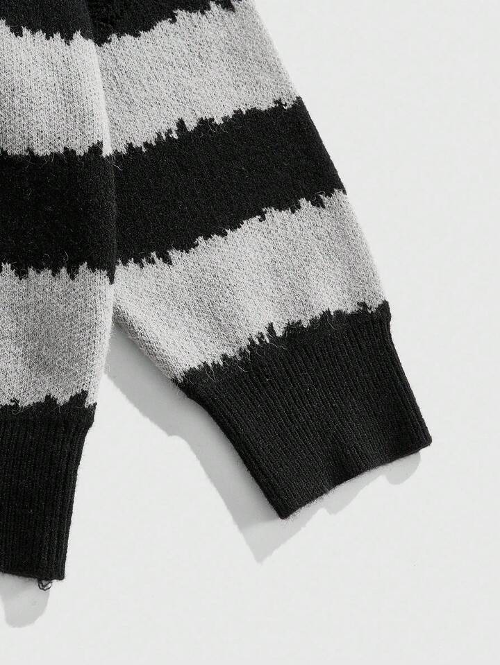 Street Life Maglione casual da uomo a girocollo a righe con vestibilità ampia