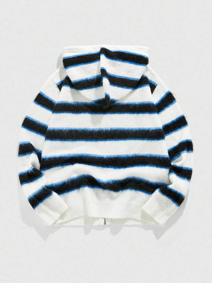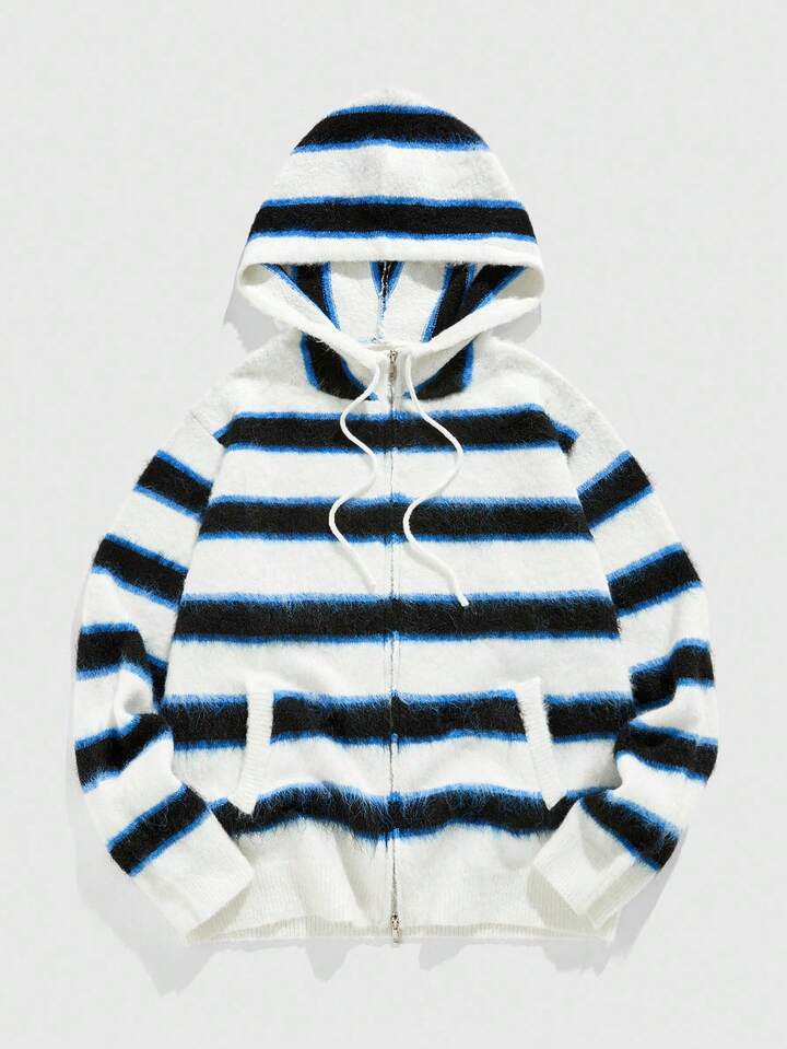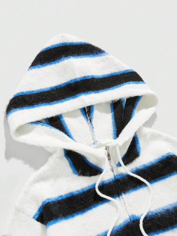 Street Life Cardigan con cappuccio a maglia con stampa a righe, autunno inverno, da uomo